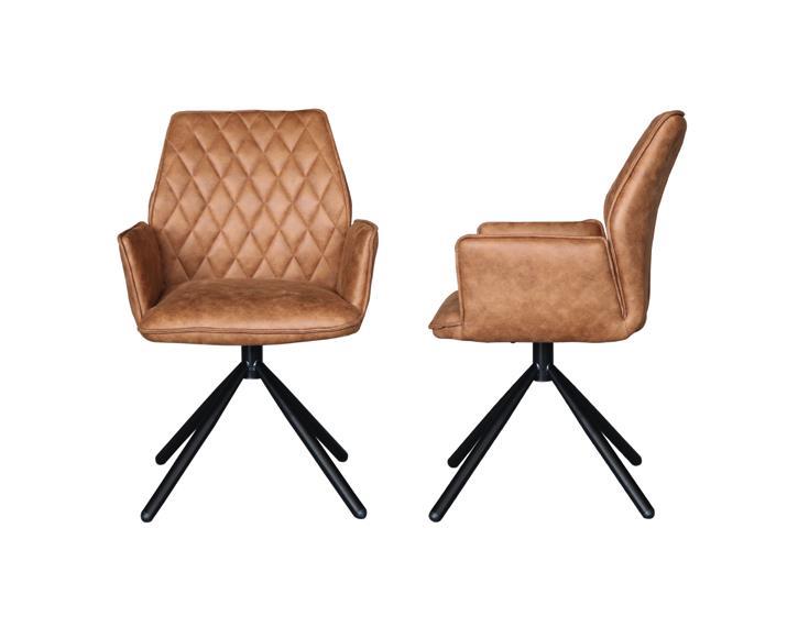 8x design eetkamerstoel, kleur: Cognac, microvezel, verzwaard en gecoat stalen onderstel, spider poot extra dik, armleuningen gestoffeerd, conditie: nieuw.