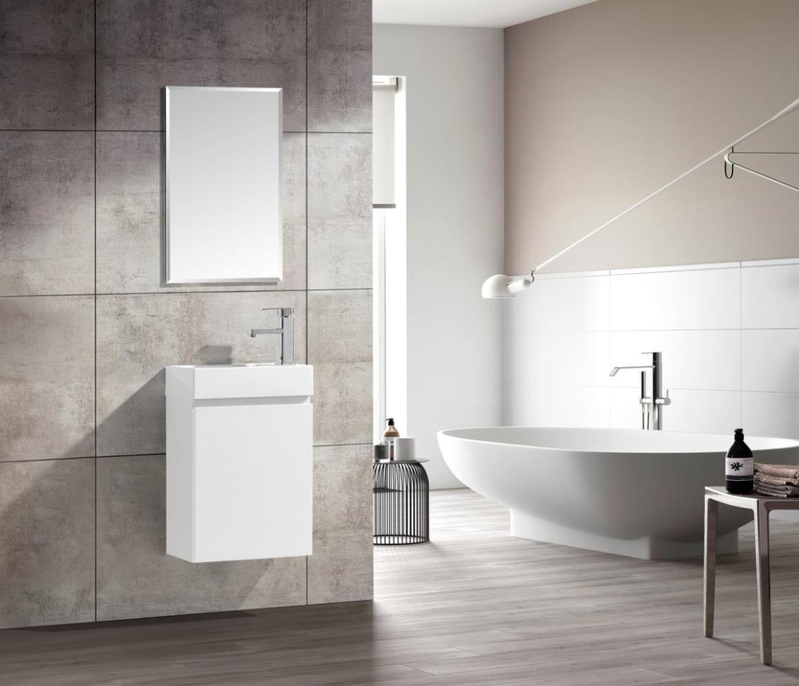 1st 40cm Toiletmeubel MDF - Kleur: Mat Wit - Met wastafel - Afm. B40xH60xD22CM - Deur voorzien van Softclose systeem - Spiegel 40x70cm - kraan niet inbegrepen - COMO 400-03