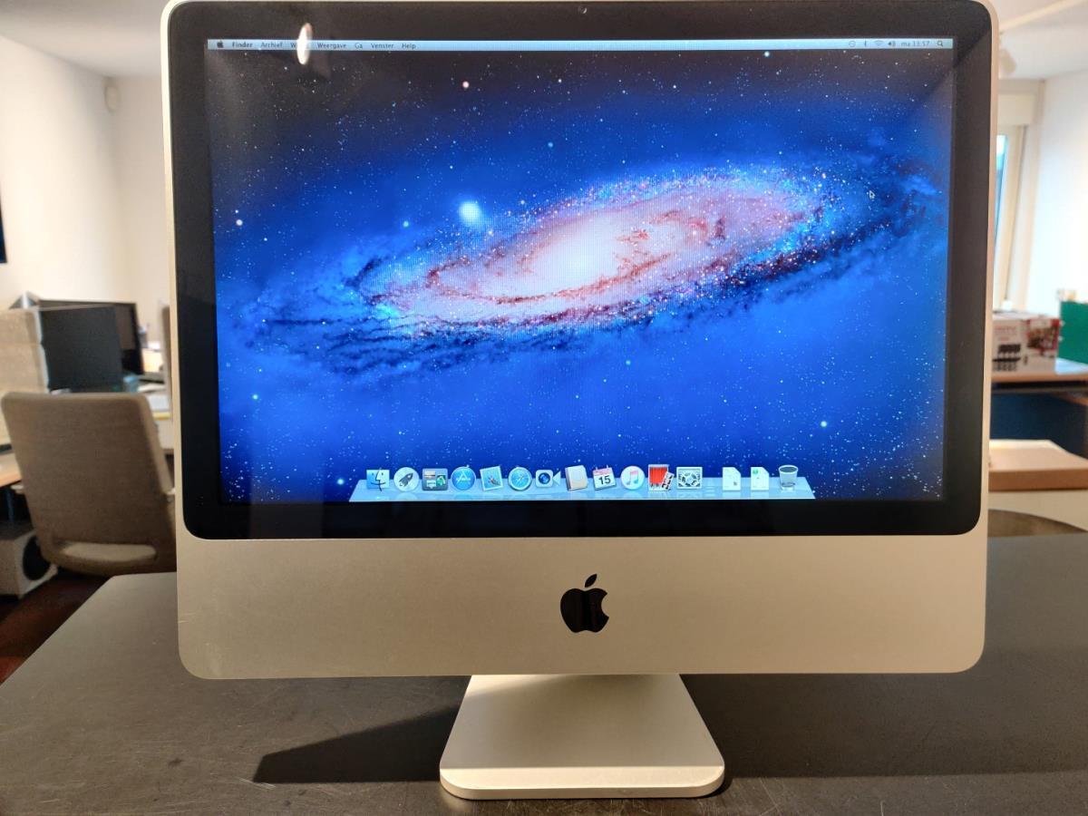 1 Apple iMac 20 inch "C2D@2.4GHz - Memory: 4gb - HD: 250GB - Grafische kaart: Ati Radeon HD 2400 XT - Software: macOS X Lion 10.7.5 / Incl adapter. Dit betreft een Refurbished item. Serialnr: YM8302CDZE2.