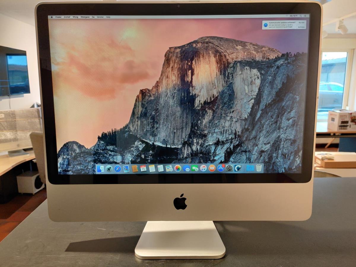 1 Apple iMac 24 inch "C2D@2.8GHz - Memory: 4gb - HD: 250GB ssd - Grafische kaart: Ati Radeon HD 2600 Pro - Software: macOS X El Capitan 10.11.4 / Incl adapter. Dit betreft een Refurbished item. Serialnr: VM850AJYZE7.
