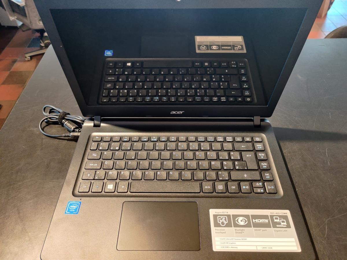 1 Laptop Acer Aspire ES14 - Intel Celeron n3350 - Scherm : 14" Led - Memory : 6GB - HD : 32GB SSD + 500GB Sata - Grafische kaart: Intel(R) HD Graphics - Layout: Azerty - Software: Windows 10 nl. vv Adapter. Dit betreft een Refurbished item.