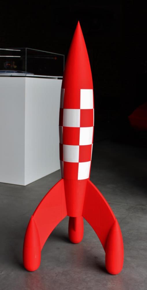 De beroemde raket meet hier 1m30 hoog en is een 3D print uit onofficiële bron.