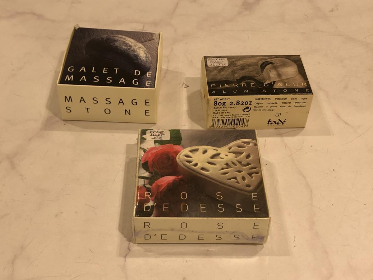 Lot number 560: Tadé zeep, massagesteen en pierre d'alun