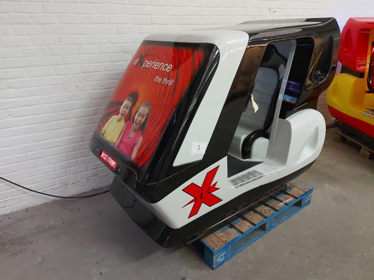 Interactieve simulator attractie met muntinworp. Kies uit 4 verschillende animaties, digitaal scherm en bewegend op 2 assen. Volledig nagekeken en getest. Werkend op 1€. Incl Sleutels.