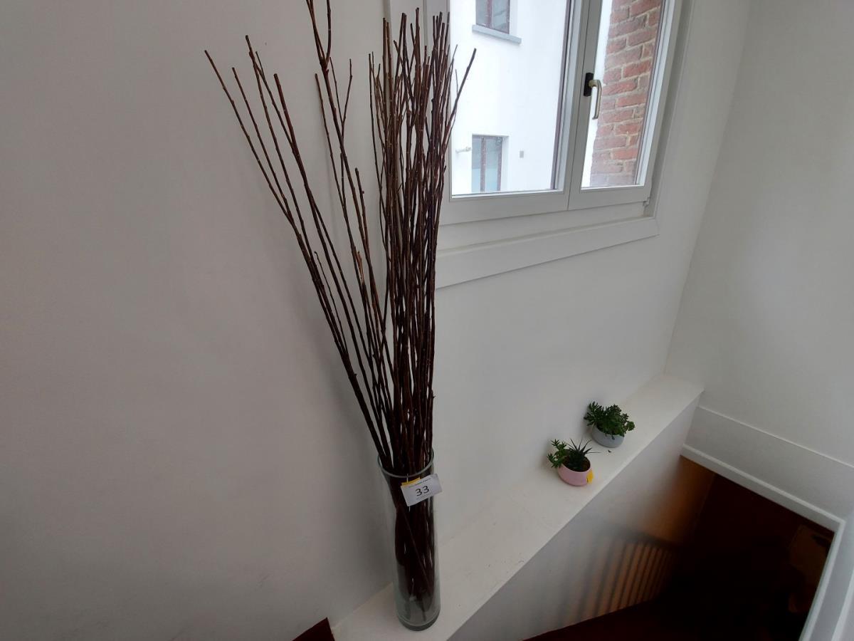 Hoge vaas inh. Takken, 2 bloempotten met vetplantjes