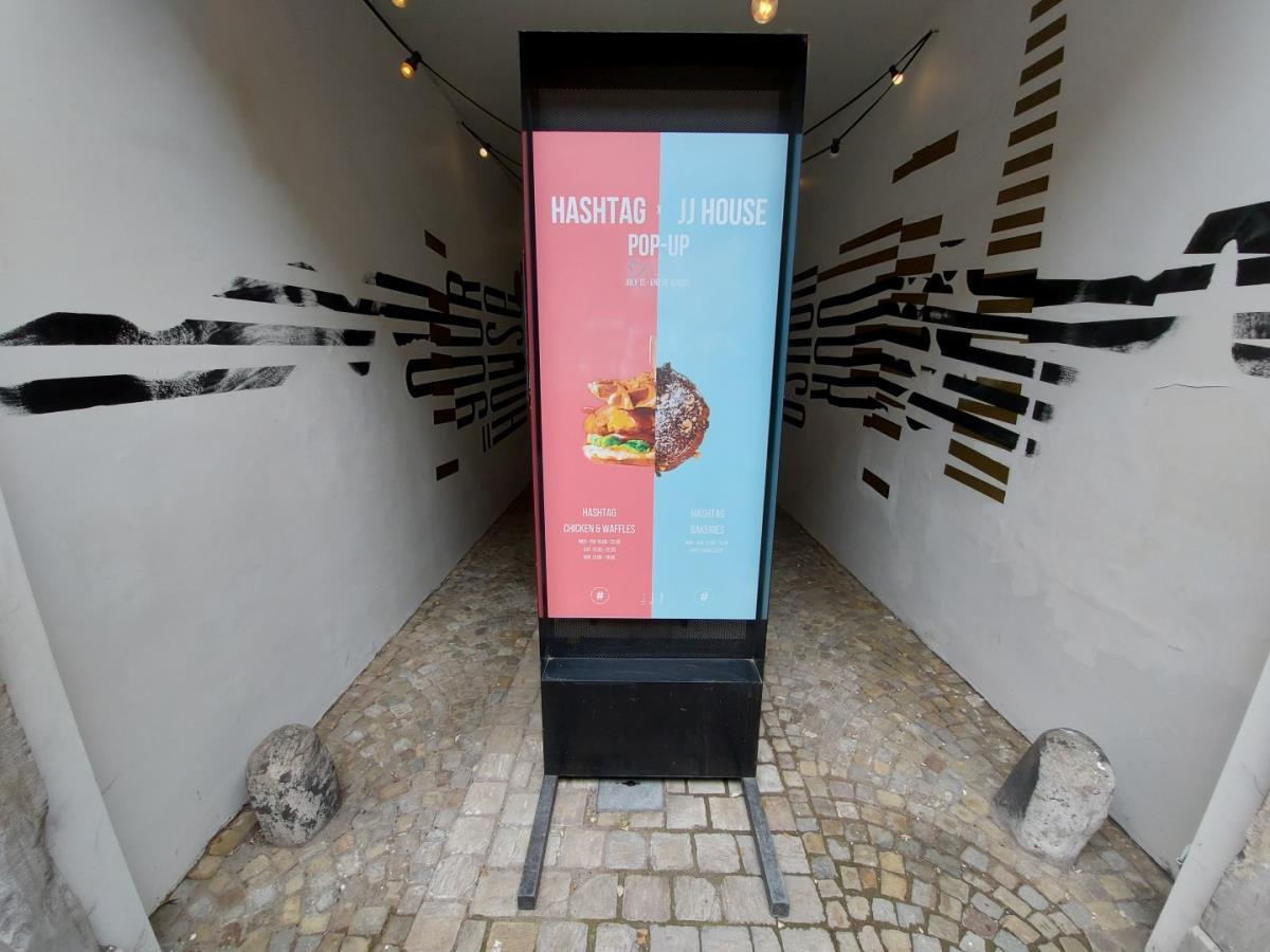 1 Groot metalen reclamebord afbeeldende Hashtag x JJ House Pop Up
