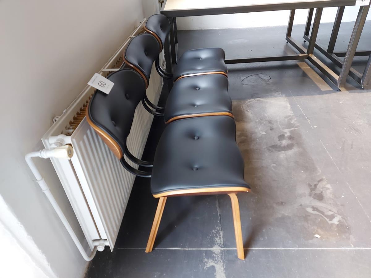 Lot number 60: 3 Houten stoelen vv zwart kunstlederen zit en rugleuning