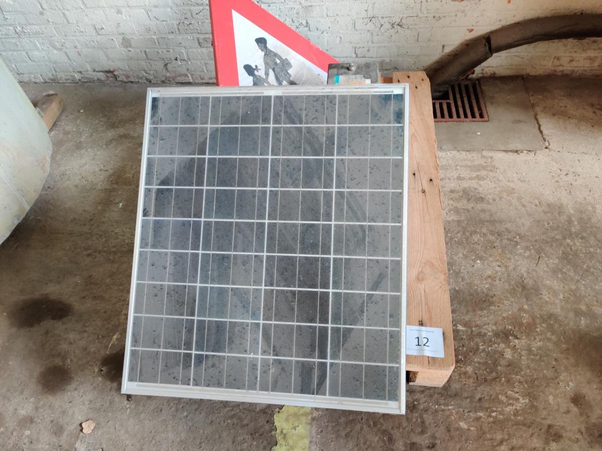 Lot number 12: Zonnepaneel, verkeersbord en batterij
