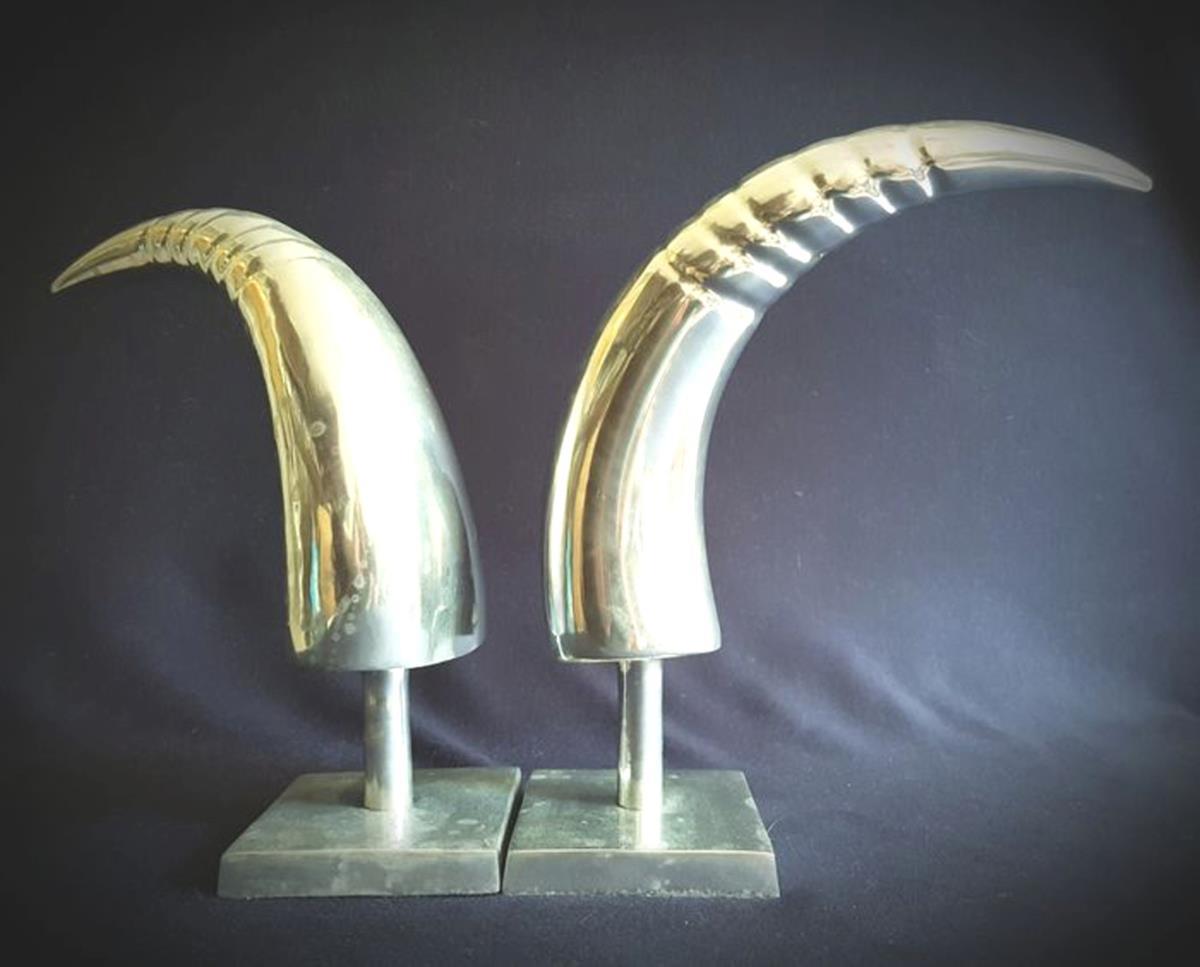 Genuine Art Deco Aluminum Pair of Horns