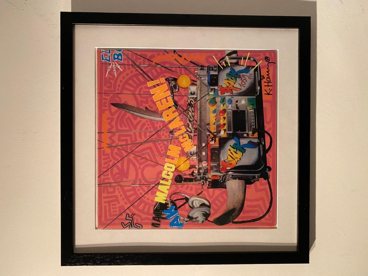 Platenhoes ontworden en gesigneerd door Keith Haring