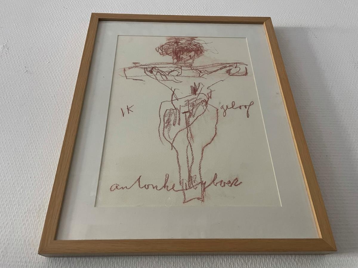 Anton Heyboer <br/z> "Ik Geloof" <br/z> Unieke tekening <br/z> Gesigneerd <br/z> Ingekaderd