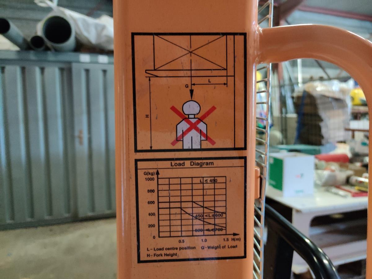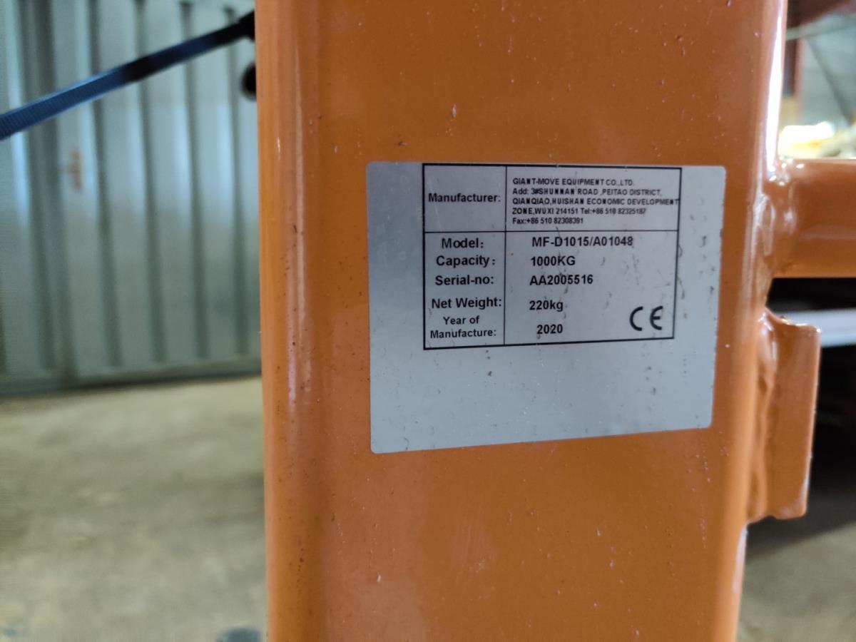 Lot number 2: Manuele stapelaar 1000kg GIANT MOVE EQUIPMENT MF-D1015/A01048