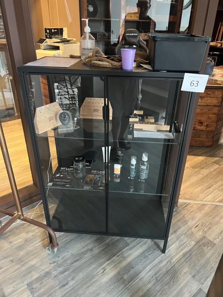 Lot number 63: Glazen vitrine kast met inhoud