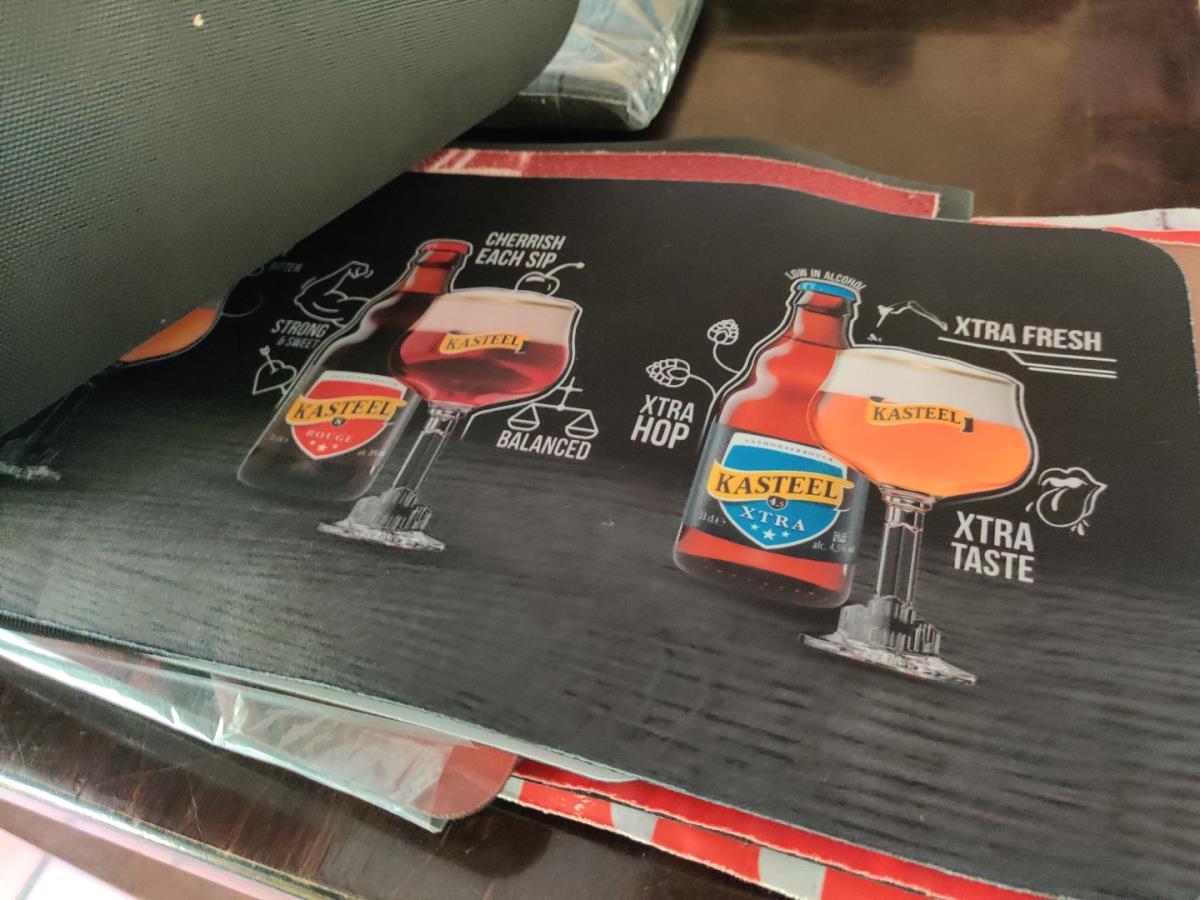plm 27 stuks (nieuwe en gebruikte) wo DUVEL, APPLETISER, MAES, COCA COLA, HAPKIN, DESPERADOS + Schort Westmalle