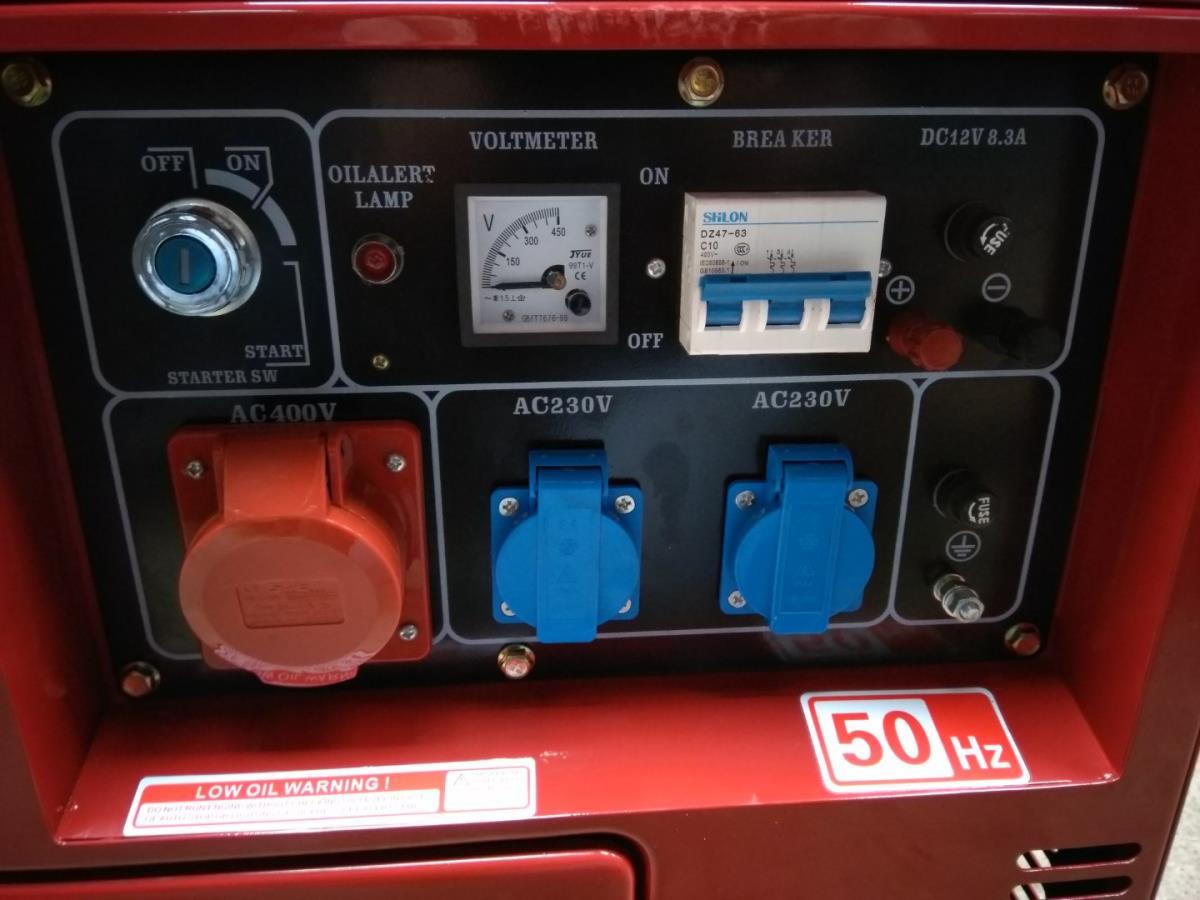 Diesel generator 6500 watt, 3 phase generator, 2x 220 volt en 1x 380 volt
