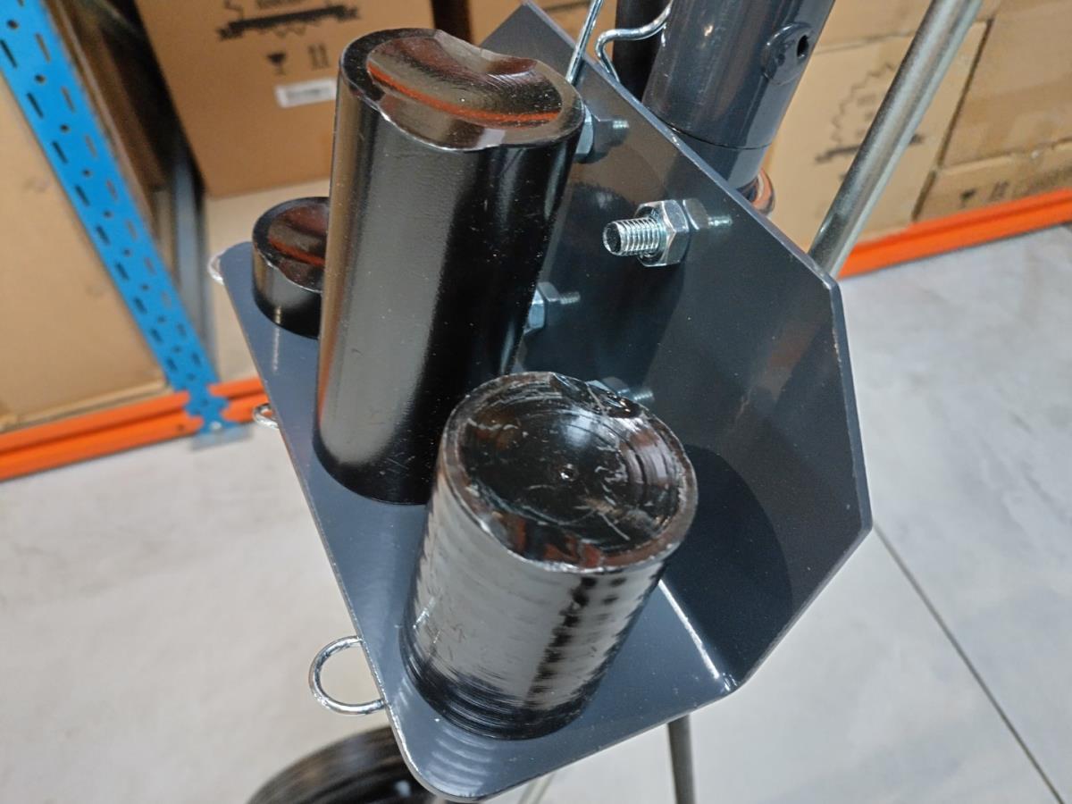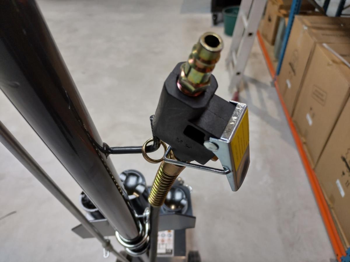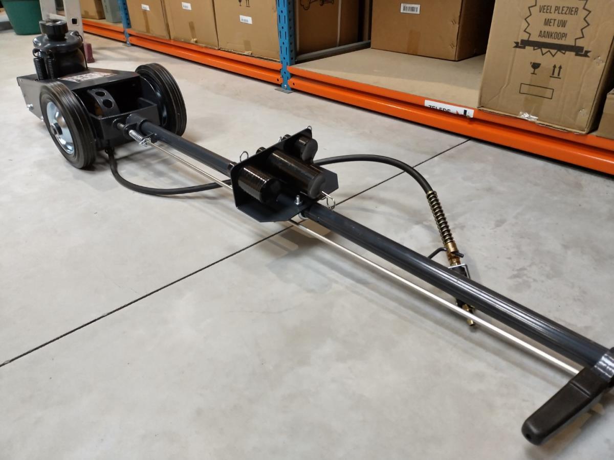 Werkplaats krik 22 ton, Pneumatisch aangedreven hydraulische krik voor het zware werk, min hoogte 22,5cm, max hoogte 43,5cm, 4 hulp opzetstukken, luchtkoppeling 1/4", werkdruk 6,9-8,3 bar