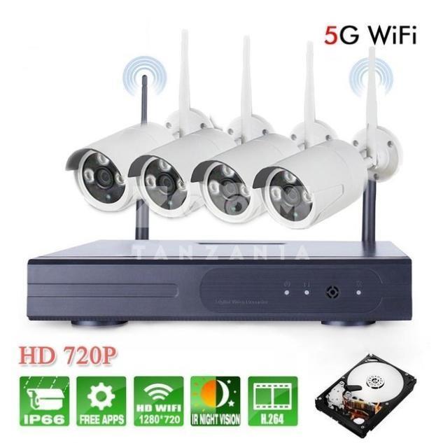 1x Draadloos camera bewakingset set met 4 nachtzicht cameras; dankzij de netwerkaansluiting volgt u uw cameras via internet en met uw smartphone; dag en nacht; een zonnekap beschermt tegen fel zonlicht; overdag leveren de cameras een scherp beeld in kleur; zodra het donker wordt schakelen de infrarood leds aan (nachtzicht afstand tot wel 25 meter) nieuw in doos