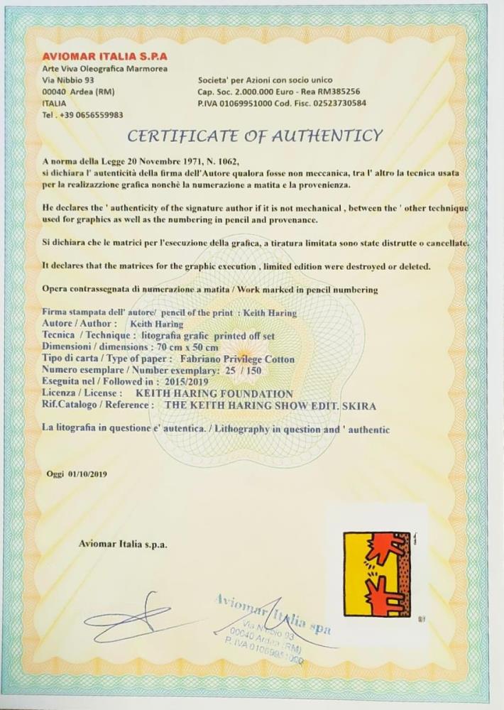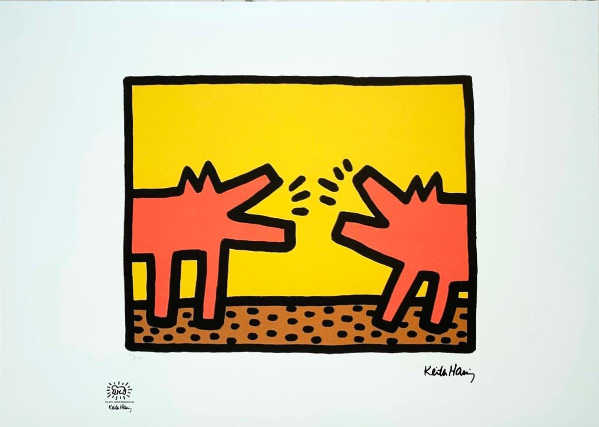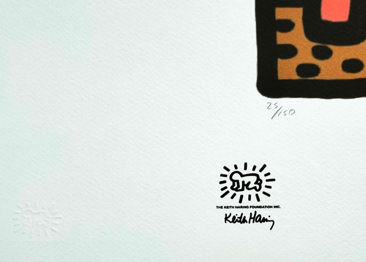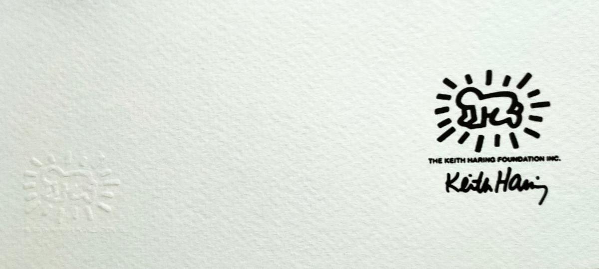 Keith Haring (After) Lithografie Getekend in de plaat Afmeting : 50x70cm Blinddrukstempel + inktstempel Keith Haring foundation Limited édition van 150 stuks.gallery prijs 1750€