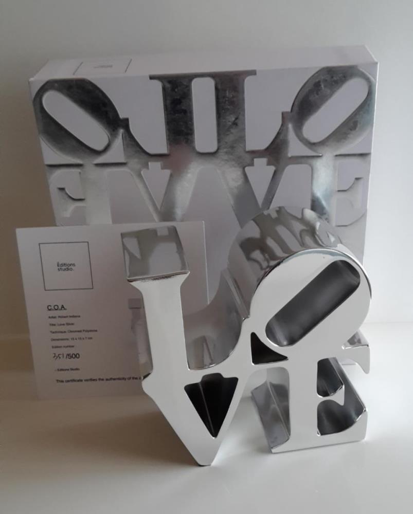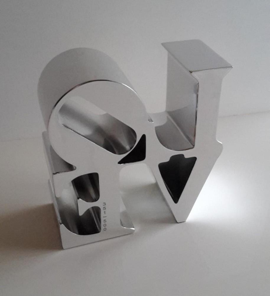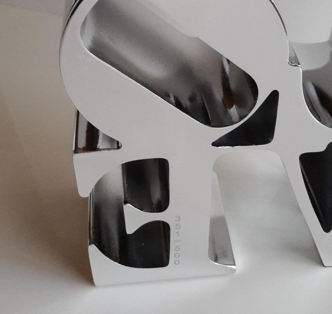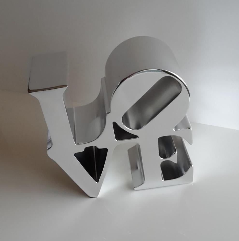 Love' sculptuur, 'Silver', in kunsthars uitgebracht door Editions studio van Robert Indiana's "Love" sculptuur.