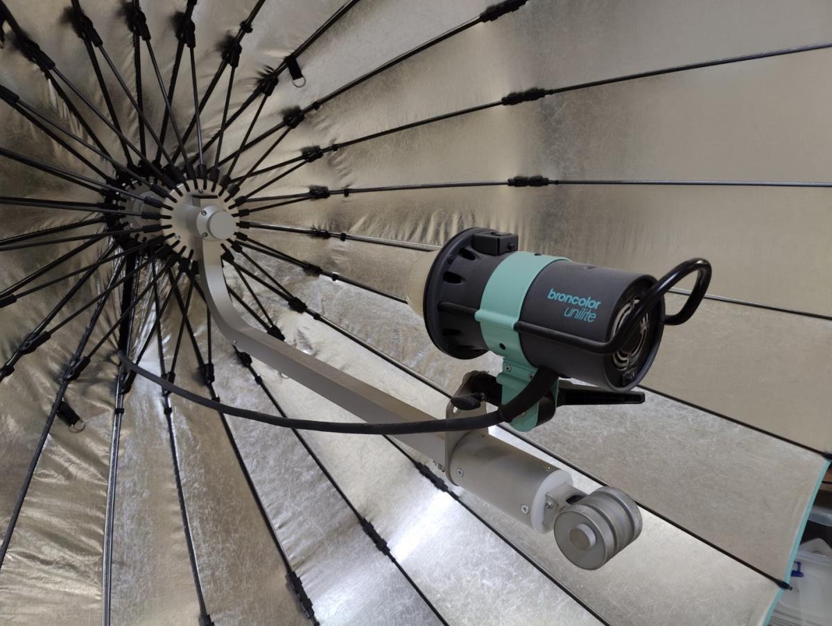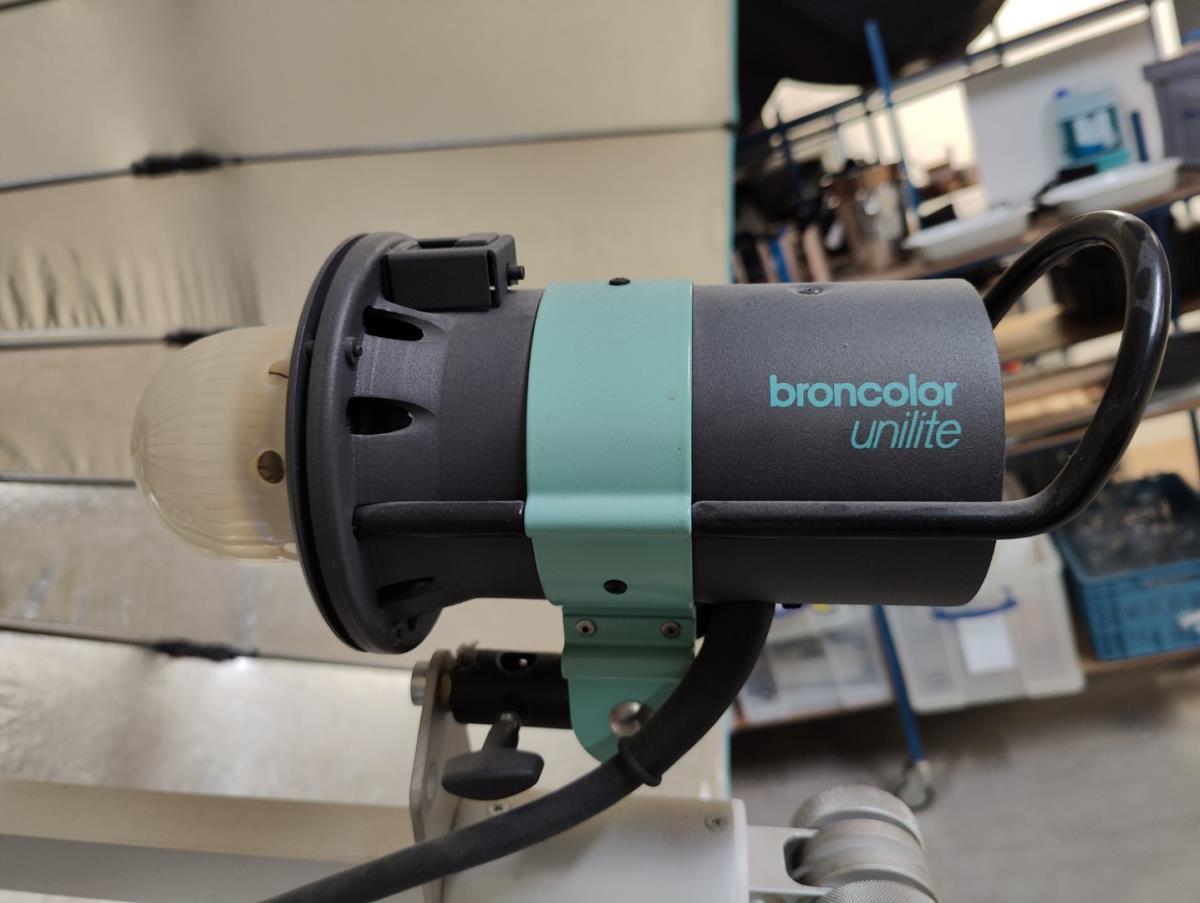 Lot number 16: 1 Verrijdbare lampstatief met professioneel studiolicht BRON COLOR UNILITE