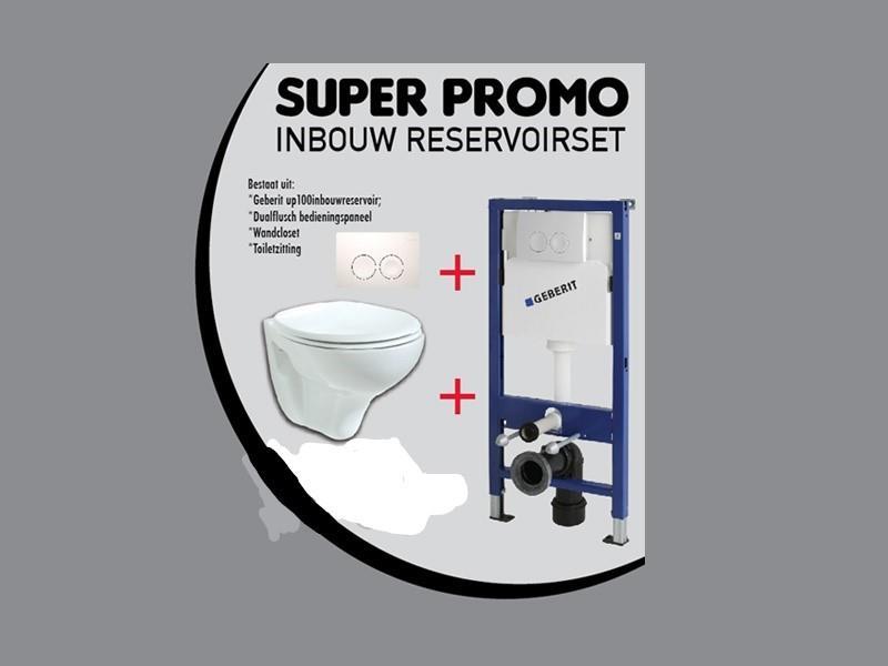 2X GEBERIT UP 100 toiletset bestaande uit inbouwreservoir + Geberit Delta 21 bedieningsplaat, incl hangtoilet en toiletzitting. Locatie: Magazijn.