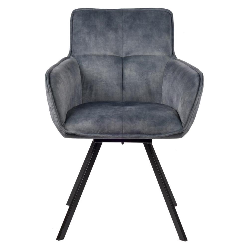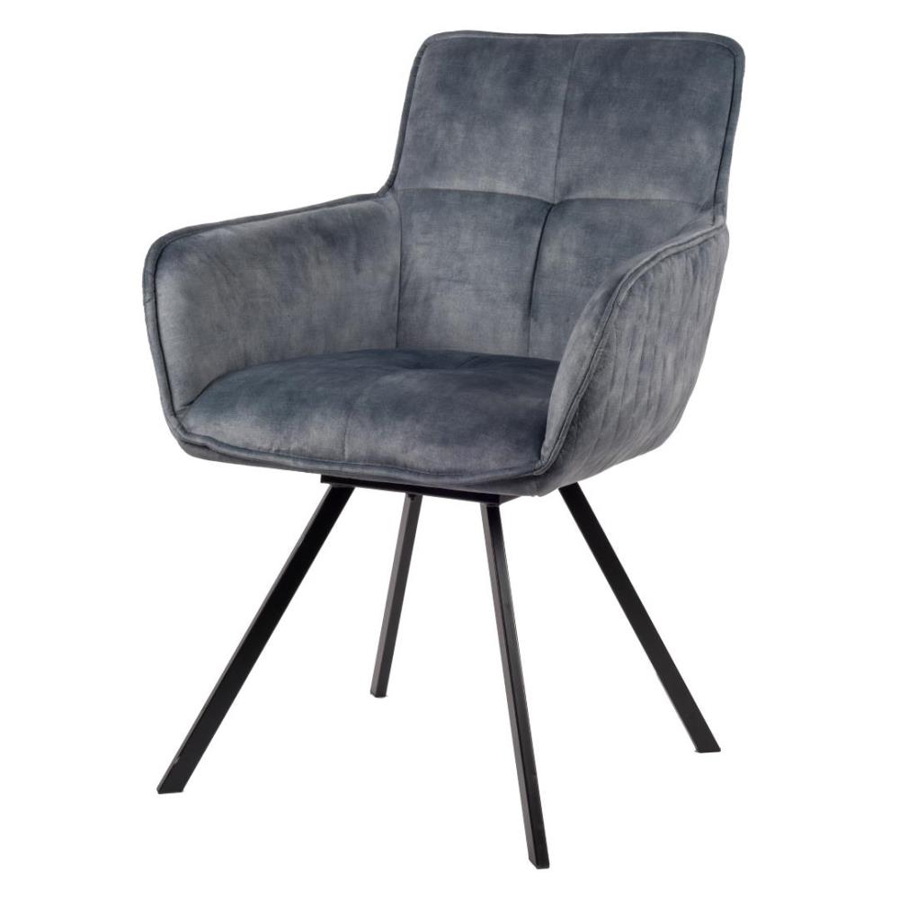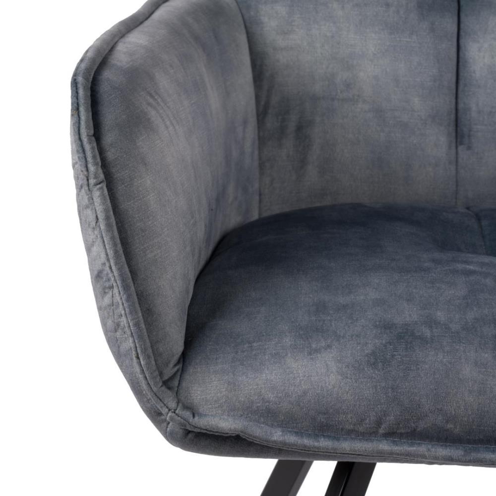 6x Design eetkamerstoelen, model: XF-blue, kleur: blauw, velvet stof, kuipstoel met verzwaard en gecoat onderstel, draaistoel