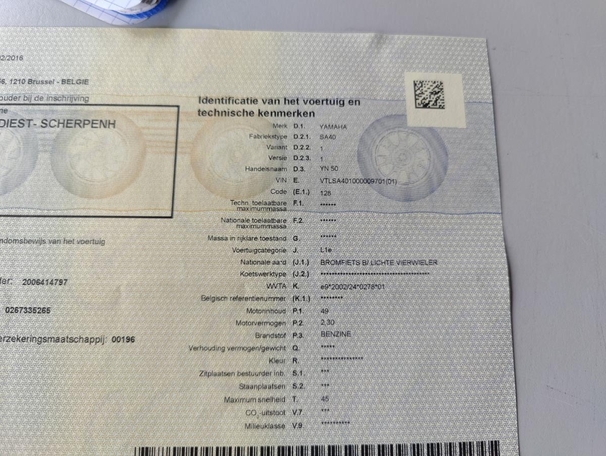 Lot number 2: Scooter Yamaha YN50, 2016