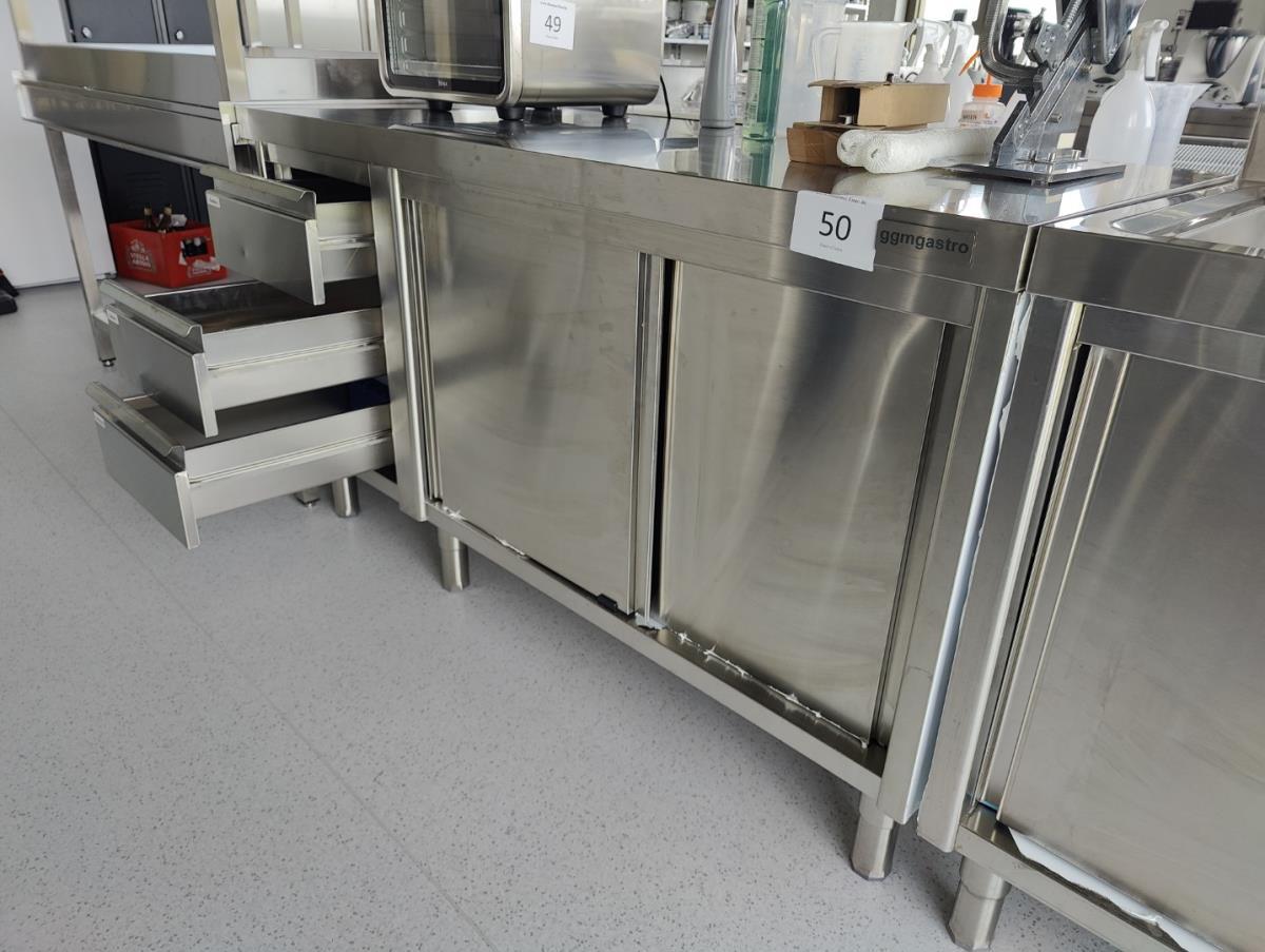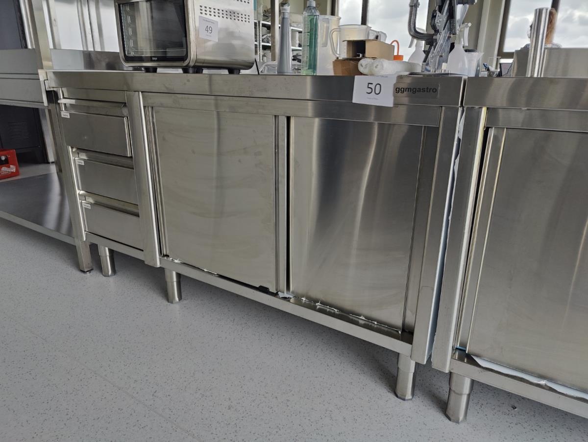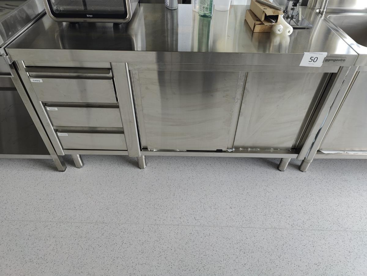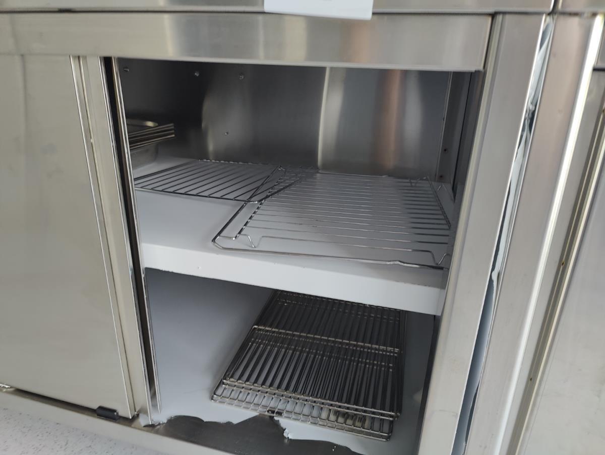 vv 3 schuiven en 3 schuifdeuren, incl inh wo div bestek, roosters en gastronormen. Afm plm 1600x700x920mm