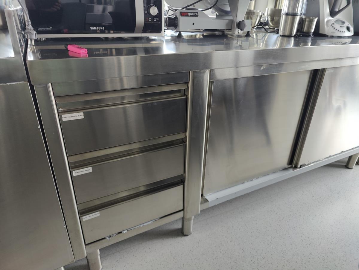 vv 3 schuiven en 2 schuifdeuren, met inhoud, afm plm 2000x700x920mm