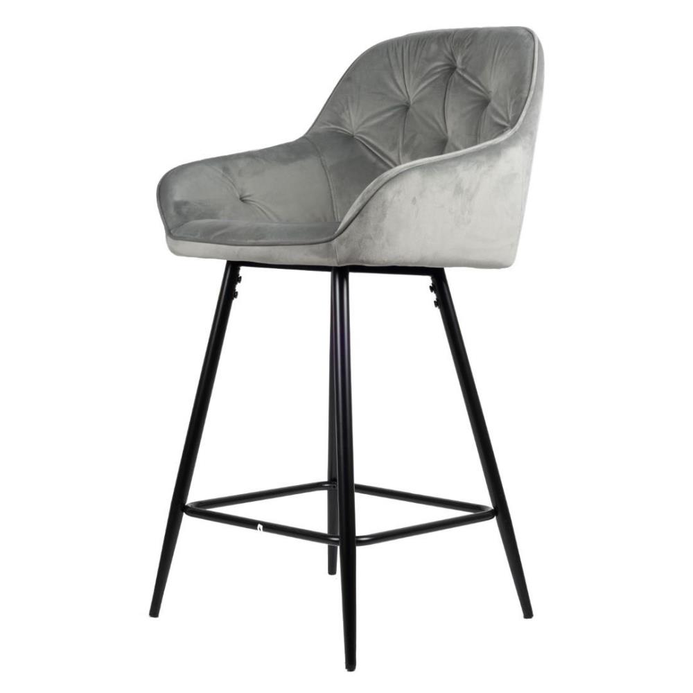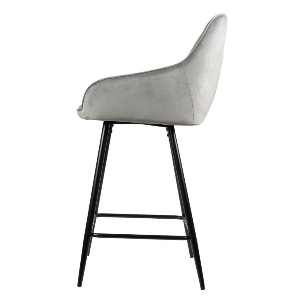 4x Design barkruk, Model: 9124-110, Kleur: grijs, geruit velvet stof, gecoat onderstel
