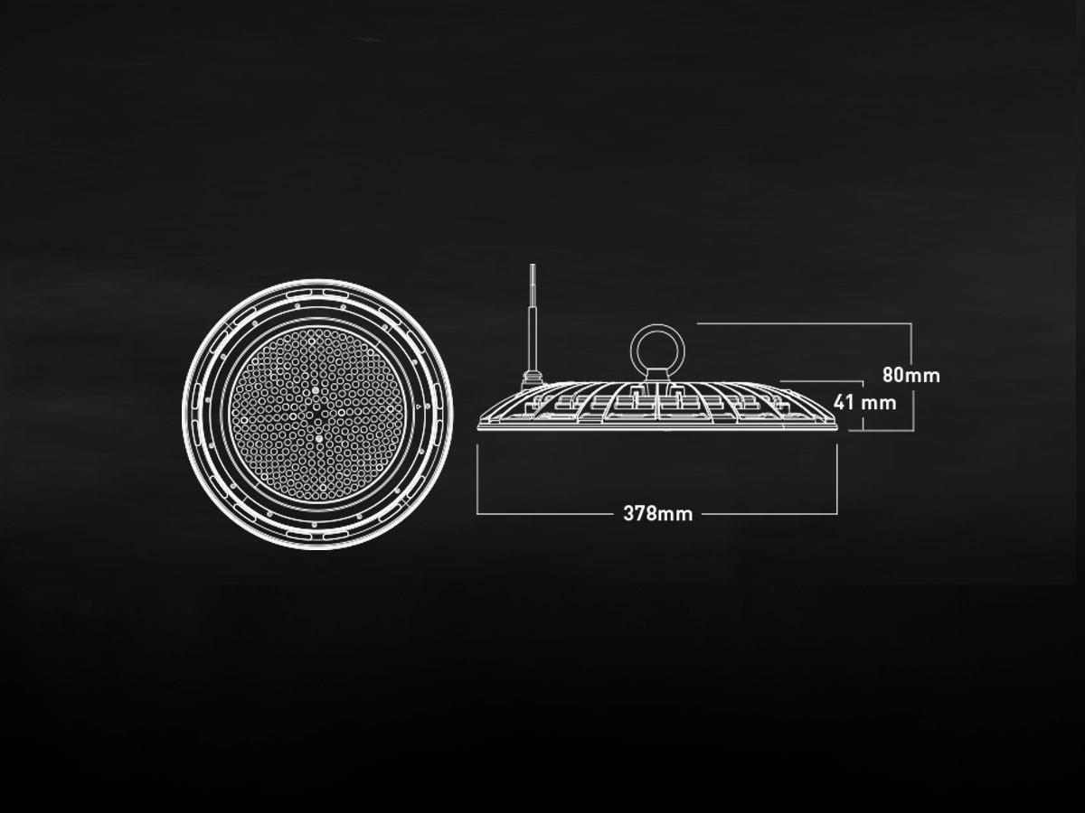 16 x 185 watt LED UFO Highbay SLIM Design Waterdicht 5000K - lichtstroom 16000 lumen SMD LED - lichtkleur daglicht 5000K - waterdicht IP65 - Lineaire IC driver inbegrepen - stralingshoek 90° - product kleur zand zwart - diam Ø 380 x 41mm - materiaal aluminum - bevestigingsset niet inclusief - levensduur 30.000 uren - voltage 200-240V - PF >0.9 - CRI >80 - SKU 00974 - het kan in watt en lumen 5% verschil tonen