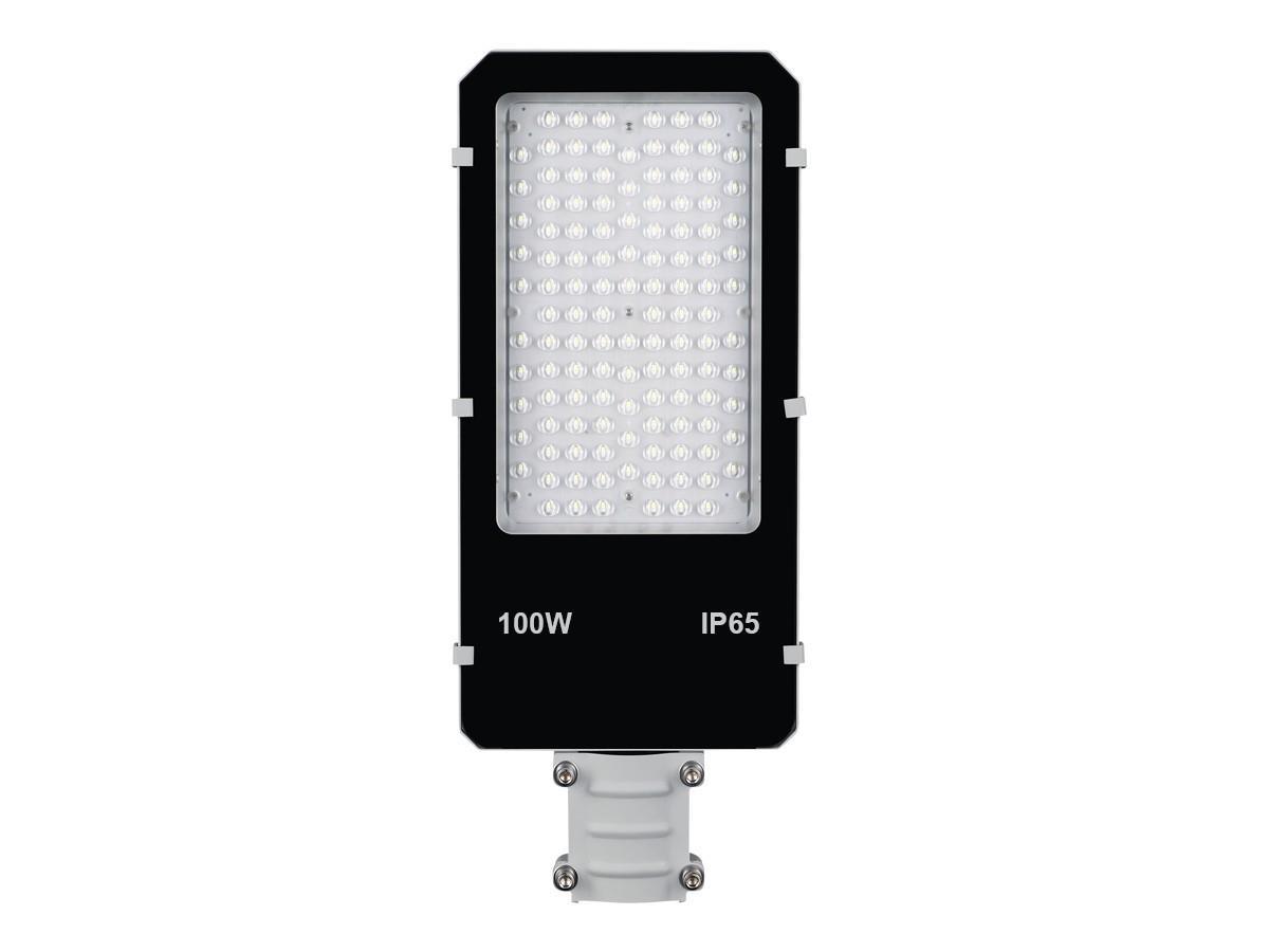 10 x 100 watt SMD LED Straat verlichtingen 5000K Waterdicht - lichtstroom 10000 lumen - lumen/watt 100 hoog lumen - lichtkleur daglicht 5000K - waterdicht IP65 - stralingshoek 90° - met lens - product kleur zwart en grijs - afm. 520 x 210 x 67mm - materiaal aluminium - bevestigingsset niet inclusief - levensduur 30.000 uren - voltage 85-265V - sku 358