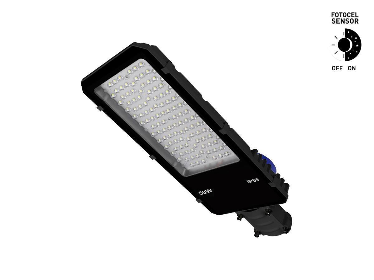2 x 50 watt Straat Verlichtingen PRO met fotocel sensor Waterdicht 5000K - lichtstroom 5500 lumen - lumen/watt 110 hoog lumen - lichtkleur daglicht 5000K - waterdicht IP65 - met fotocel sensor dag uit/nacht aan - stralingshoek 90° - product kleur zwart - met lens - afm. 460 x 190 x 60mm - materiaal aluminium - bevestigingsset niet inclusief - levensduur 30.000 uren - voltage 85-265V - SKU 773