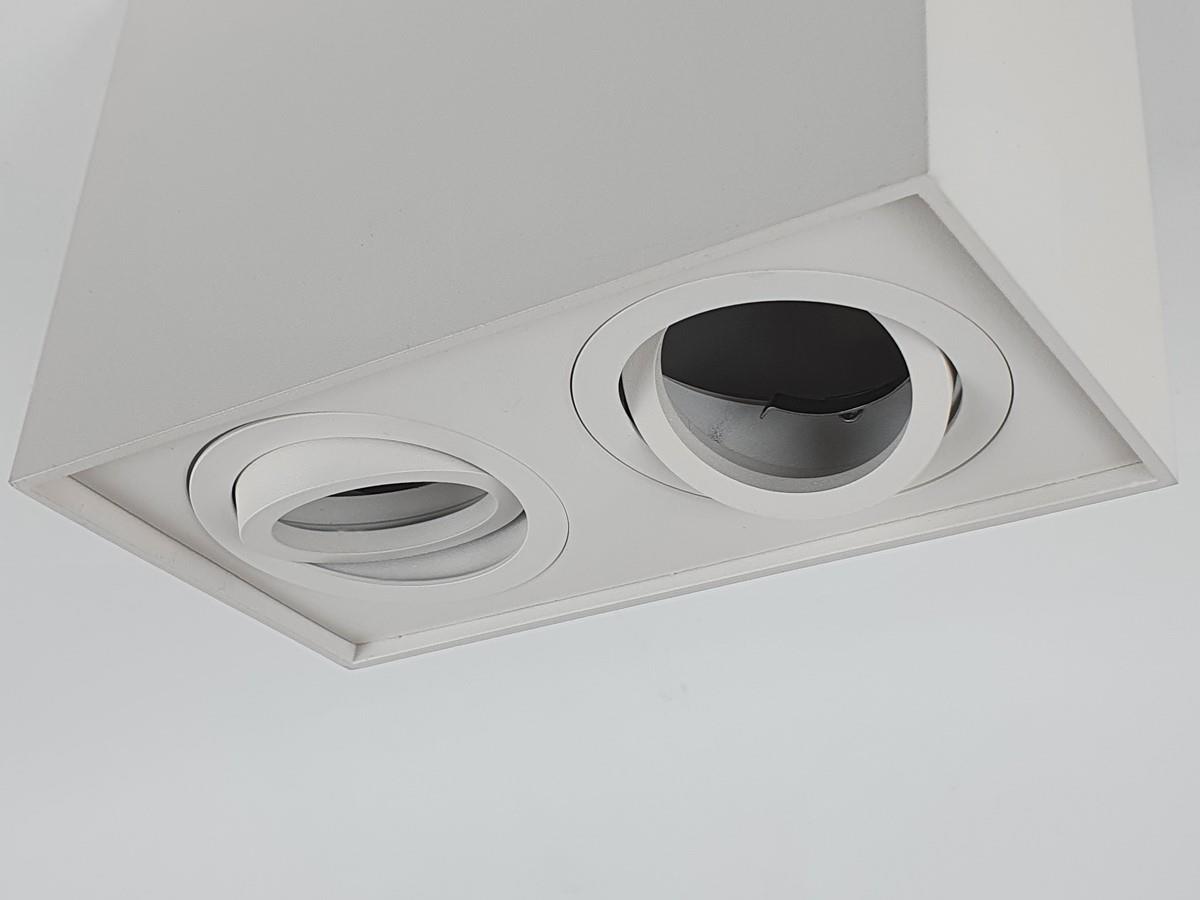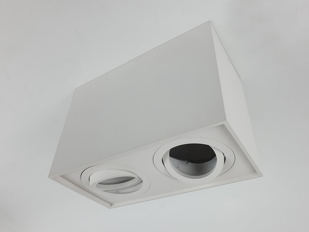 20 x GU10 Opbouwspot Armatuur rechthoekig dual fittingen zand wit kantelbaar - afdichting IP20 - product kleur zand wit - afm. 180 x 96 x 125mm - bevestiging inclusief - materiaal aluminium - fitting GU10 - bulb niet inbegrepen - geschikt voor binnen - 2 x bulb invoer - voltage 220-240V - SKU 00339