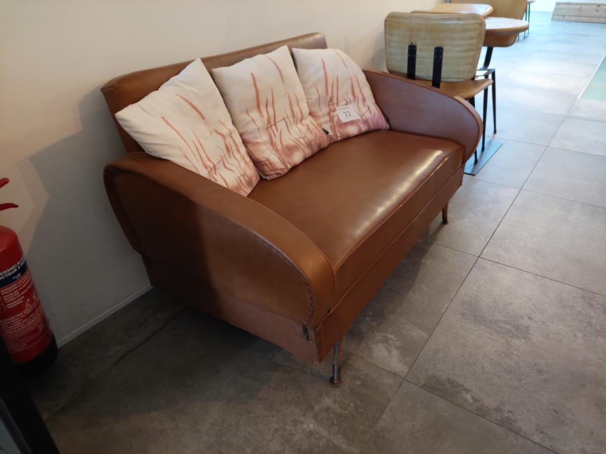 Lot number 22: VINTAGEBANKSTEL INCL 3 DECOKUSSENS SEMILEDER