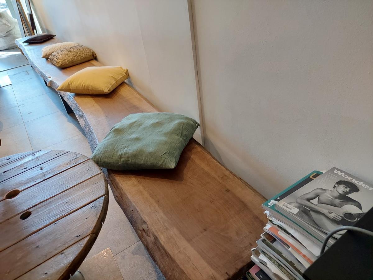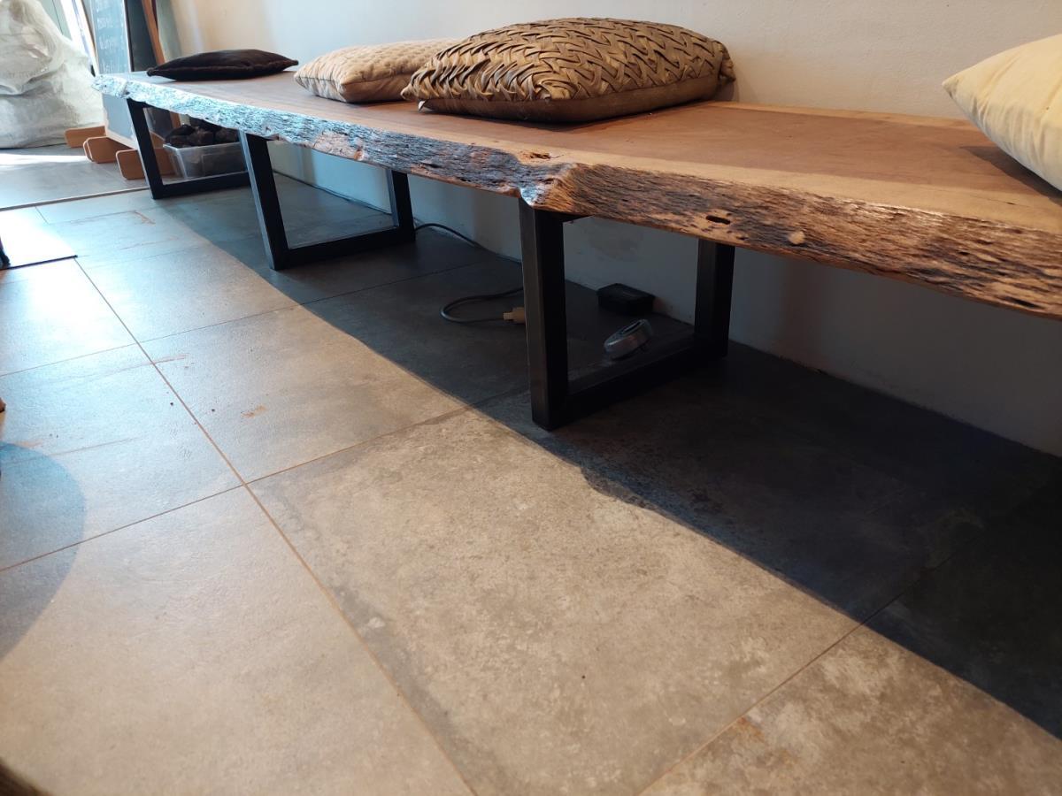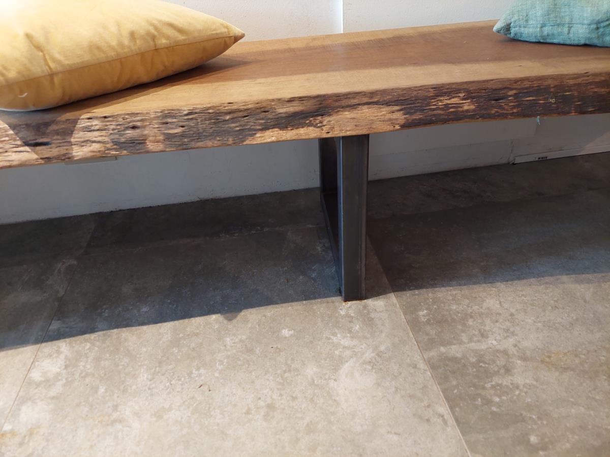 HOUTEN ZITBANK VV METALEN ONDERSTEL, INCL DECO KUSSENS
