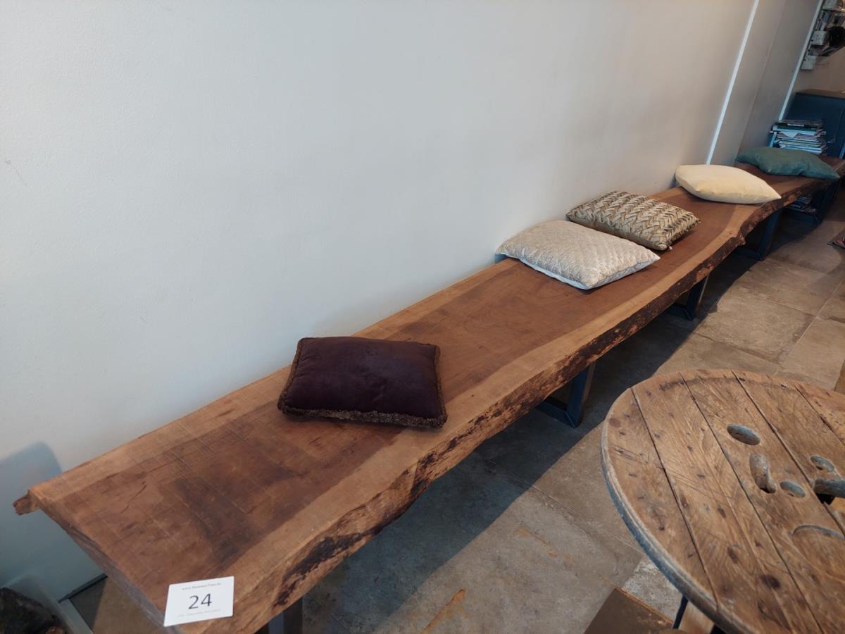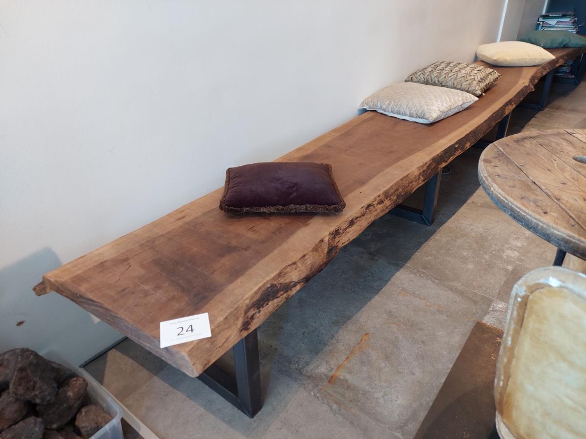 Lot number 24: HOUTEN ZITBANK VV METALEN ONDERSTEL, INCL DECO KUSSENS