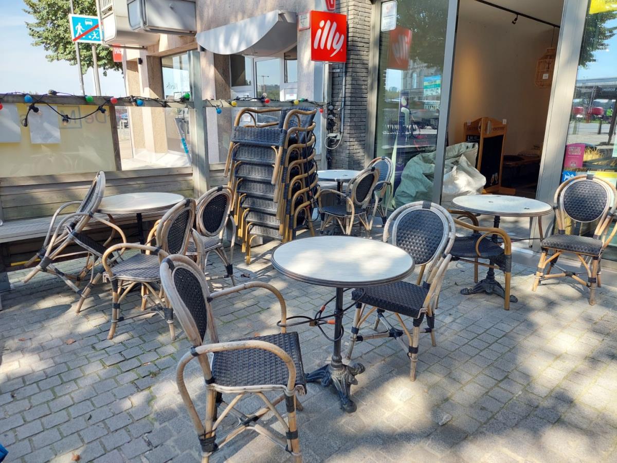 bu 4 ronde bistrotafels, 16 div stoelen