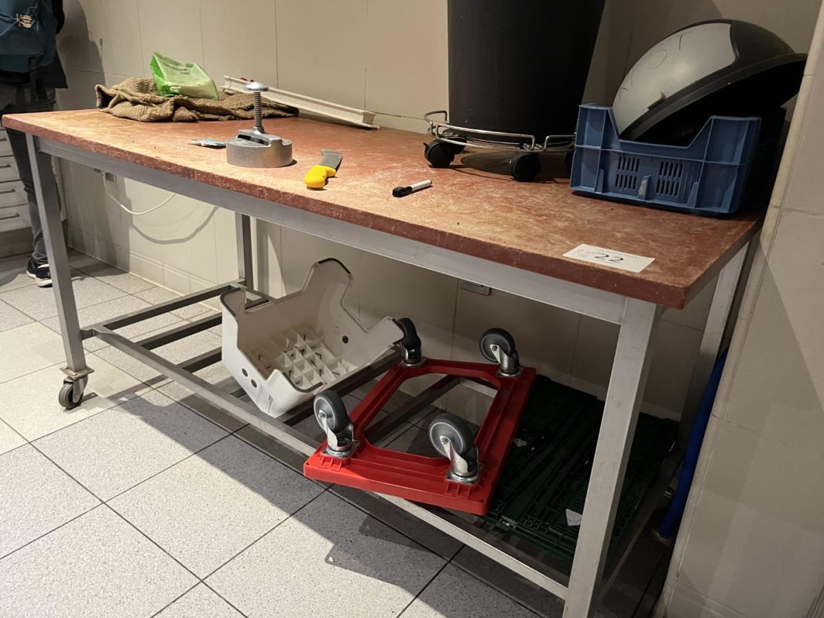 Lot number 22: RVS WERKTAFEL MET PVC WERKBLAD