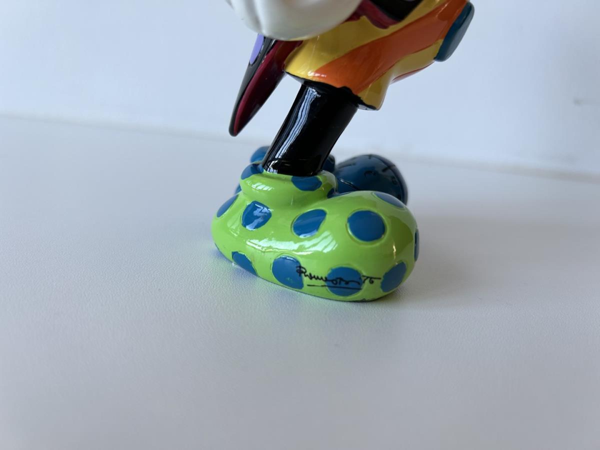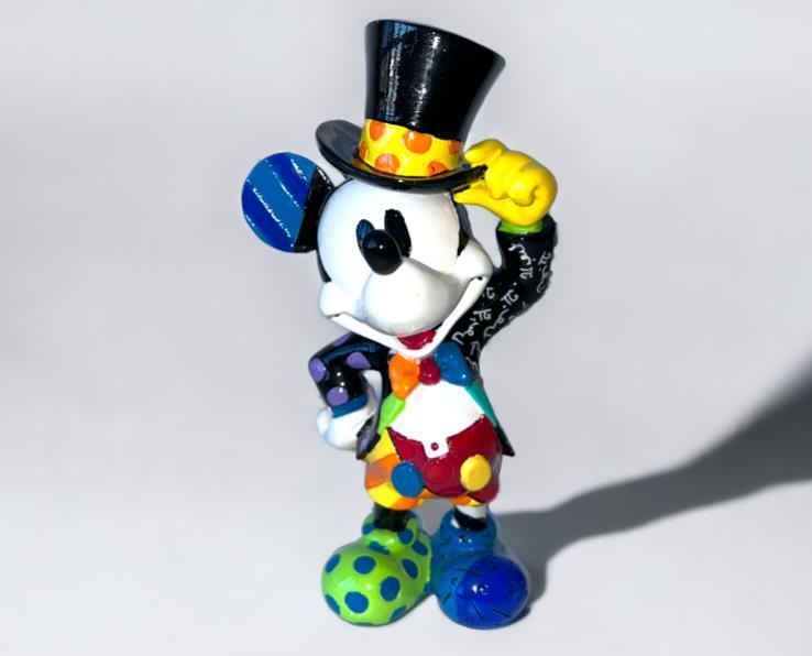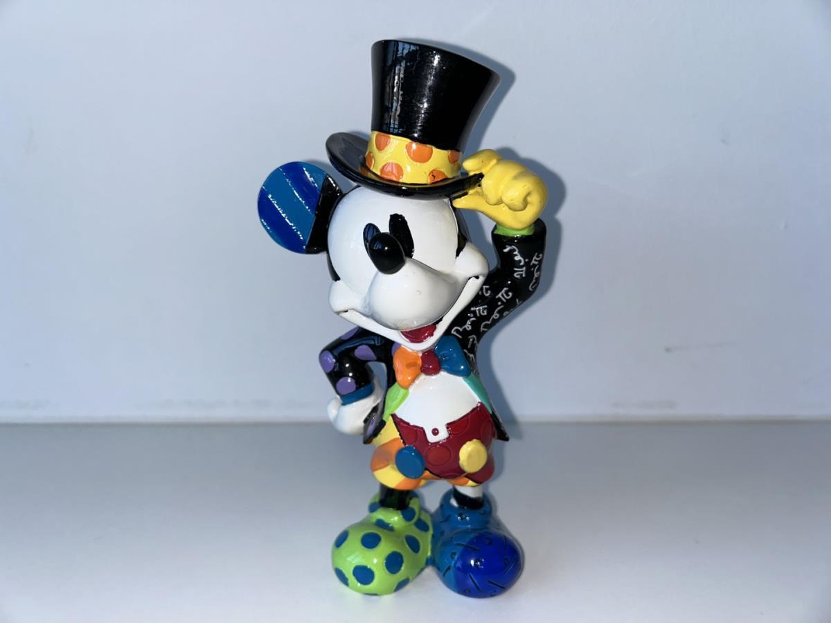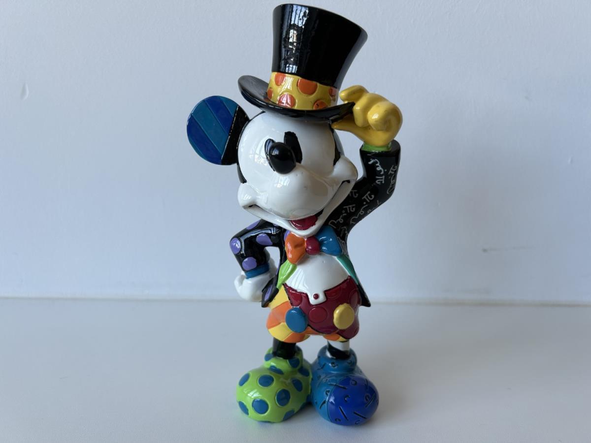 Origineel keramiek Disney-beeld en verzamelobject van Disney-icoon Mickey Mouse, vervaardigd uit hoogwaardige polyresin steenhars door kunstenaar Romero Britto. Afmeting: 20.32cm X 7.62cm. Staat/conditie: Perfecte nieuwstaat, zonder originele verpakking en verpakkingsdoos. Uitgever: Enesco/Romero Britto. Reeks/collectie: Disney by Britto uit Popshop Gallery (shopbritto.com) - Showcase collection. Authenticiteitszegel onderaan het beeld (zie foto's) en handtekening in beeld gegraveerd (zie foto). Galerijprijs: 275 dollar (zie shopbritto.com). Beelden nemen in waarde toe, vermits ze gelimiteerd worden geproduceerd en momenteel niet meer worden vervaardigd. Braziliaans kunstenaar Romero Britto staat bekend om zijn vrolijke en bonte gebruik van kleuren en patronen. Hij combineert klassieke Disney-figuren met pop-art-designs, De beeldjes zijn stuk voor stuk herkenbare Disney-karakters, maar gezien door de ogen van Britto. Een lust voor het oog en een kleurrijke eyecatcher in je interieur. De beelden worden handbeschilderd, dus minimale afwijkingen in kleur en/of afwerking kunnen voorkomen.