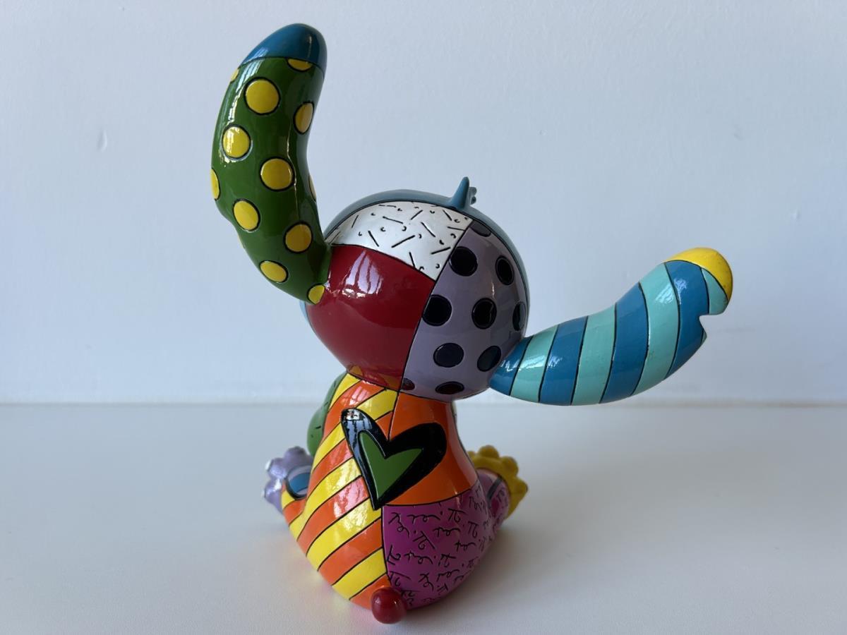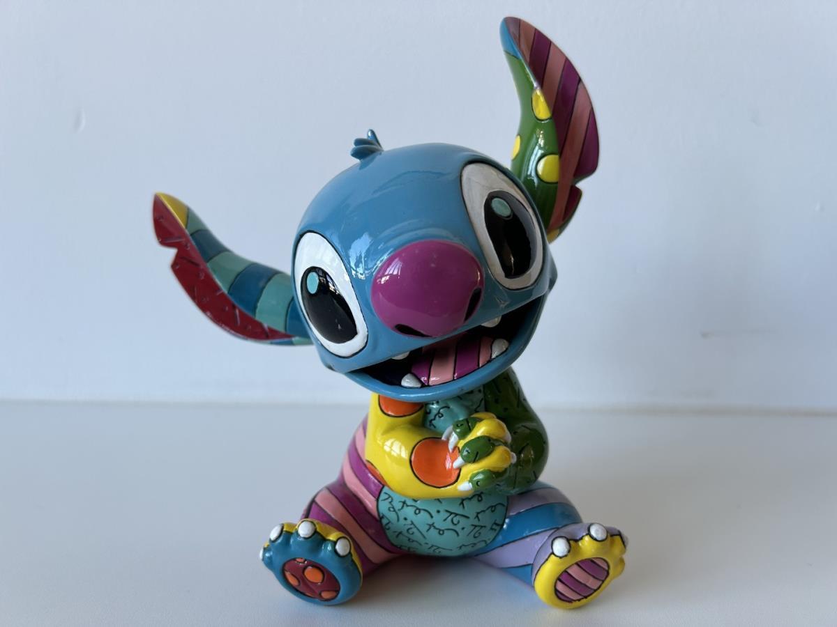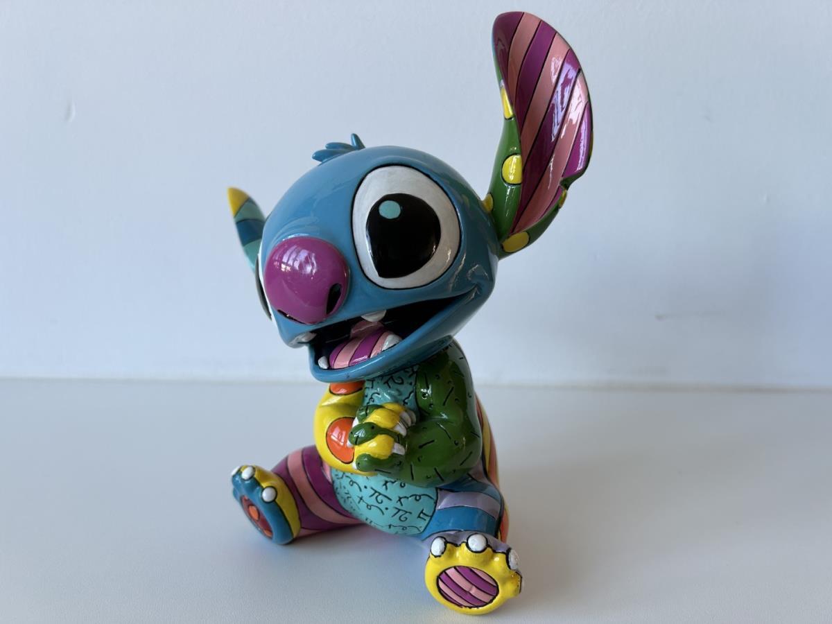 Origineel keramiek Disney-beeld en verzamelobject van Stitch uit tekenfilm Lilo & Stitch, vervaardigd uit hoogwaardige polyresin steenhars door kunstenaar Romero Britto. Afmeting: 19.56cm X 12.7cm. Staat/conditie: Perfecte nieuwstaat, zonder originele verpakking en verpakkingsdoos. Uitgever: Enesco/Romero Britto. Reeks/collectie: Disney by Britto uit Popshop Gallery (shopbritto.com) - Showcase collection. Authenticiteitszegel onderaan het beeld (zie foto's) en handtekening in beeld gegraveerd (zie foto). Galerijprijs: 350 dollar (zie shopbritto.com). Beelden nemen in waarde toe, vermits ze gelimiteerd worden geproduceerd en momenteel niet meer worden vervaardigd. Braziliaans kunstenaar Romero Britto staat bekend om zijn vrolijke en bonte gebruik van kleuren en patronen. Hij combineert klassieke Disney-figuren met pop-art-designs, De beeldjes zijn stuk voor stuk herkenbare Disney-karakters, maar gezien door de ogen van Britto. Een lust voor het oog en een kleurrijke eyecatcher in je interieur. De beelden worden handbeschilderd, dus minimale afwijkingen in kleur en/of afwerking kunnen voorkomen.