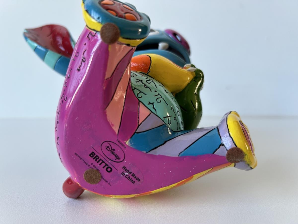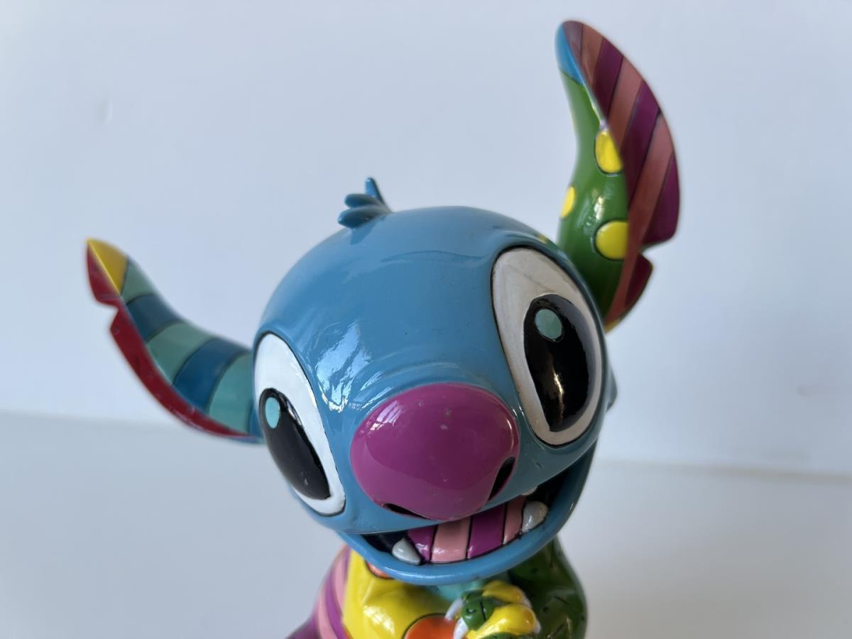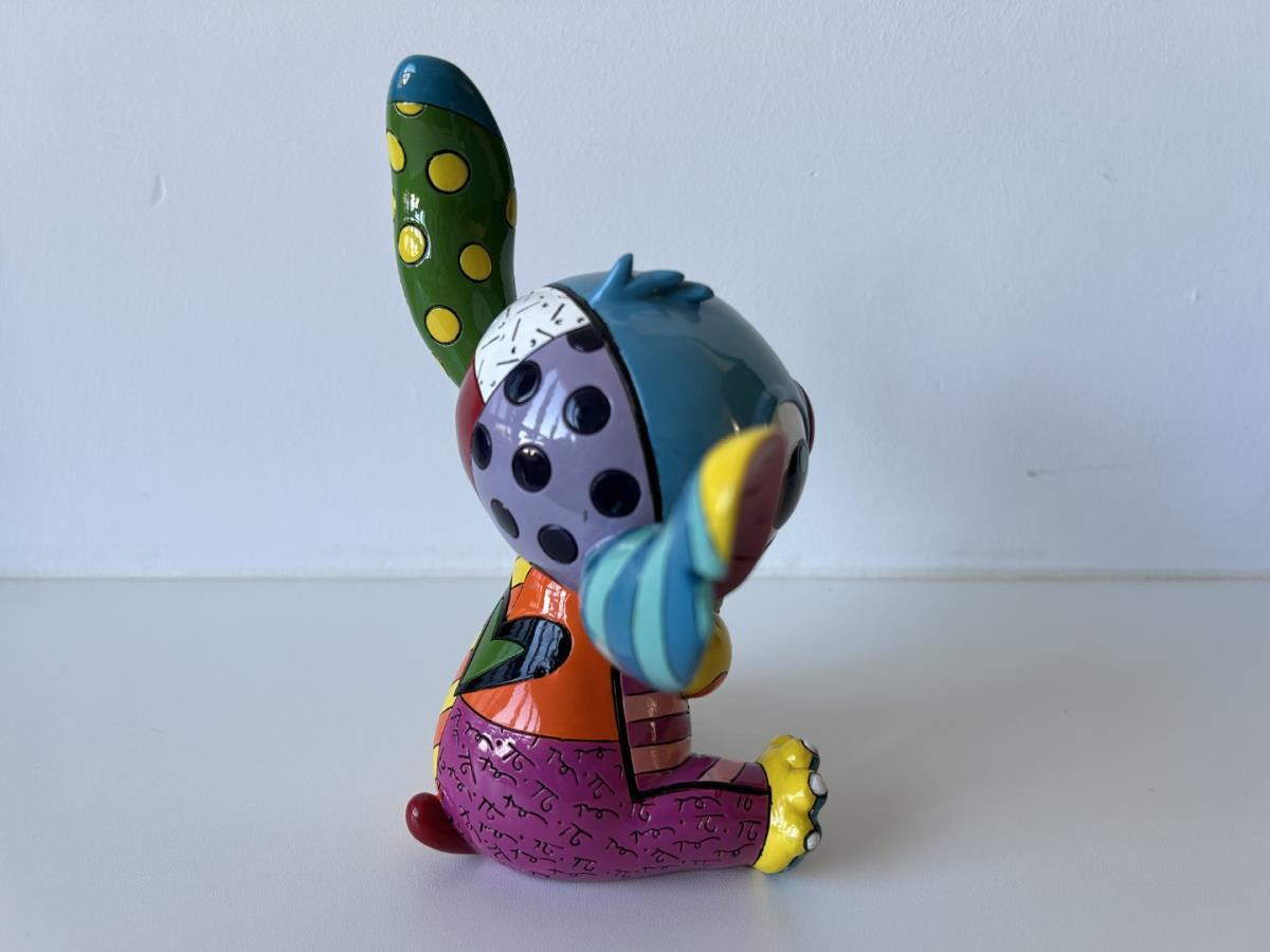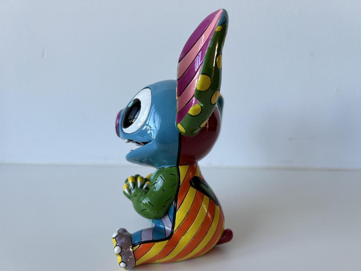 Origineel keramiek Disney-beeld en verzamelobject van Stitch uit tekenfilm Lilo & Stitch, vervaardigd uit hoogwaardige polyresin steenhars door kunstenaar Romero Britto. Afmeting: 19.56cm X 12.7cm. Staat/conditie: Perfecte nieuwstaat, zonder originele verpakking en verpakkingsdoos. Uitgever: Enesco/Romero Britto. Reeks/collectie: Disney by Britto uit Popshop Gallery (shopbritto.com) - Showcase collection. Authenticiteitszegel onderaan het beeld (zie foto's) en handtekening in beeld gegraveerd (zie foto). Galerijprijs: 350 dollar (zie shopbritto.com). Beelden nemen in waarde toe, vermits ze gelimiteerd worden geproduceerd en momenteel niet meer worden vervaardigd. Braziliaans kunstenaar Romero Britto staat bekend om zijn vrolijke en bonte gebruik van kleuren en patronen. Hij combineert klassieke Disney-figuren met pop-art-designs, De beeldjes zijn stuk voor stuk herkenbare Disney-karakters, maar gezien door de ogen van Britto. Een lust voor het oog en een kleurrijke eyecatcher in je interieur. De beelden worden handbeschilderd, dus minimale afwijkingen in kleur en/of afwerking kunnen voorkomen.