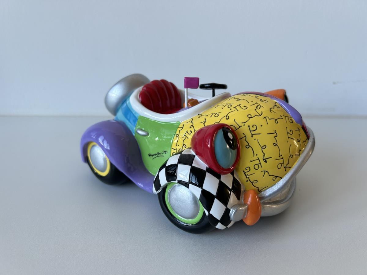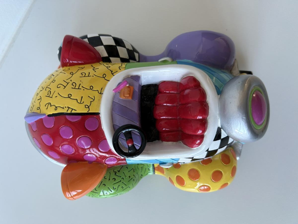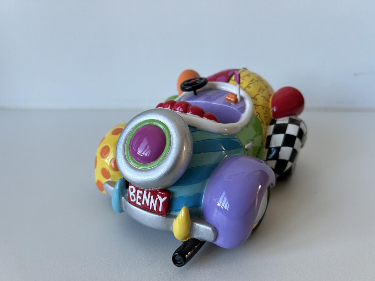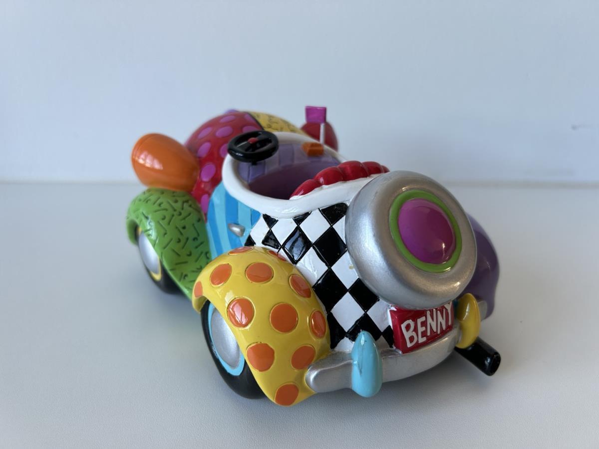Origineel keramiek Disney-beeld en verzamelobject van Benny the Cab uit Roger Rabit, vervaardigd uit hoogwaardige polyresin steenhars door kunstenaar Romero Britto. Afmeting: 18cm x 13cm x 6cm. Staat/conditie: Perfecte nieuwstaat, zonder originele verpakking en verpakkingsdoos. Uitgever: Enesco/Romero Britto. Reeks/collectie: Disney by Britto uit Popshop Gallery (shopbritto.com) - Showcase collection. Authenticiteitszegel onderaan het beeld (zie foto's) en handtekening in beeld gegraveerd (zie foto). Galerijprijs: 850 dollar (zie shopbritto.com) . Beelden nemen in waarde toe, vermits ze gelimiteerd worden geproduceerd en momenteel niet meer worden vervaardigd. Braziliaans kunstenaar Romero Britto staat bekend om zijn vrolijke en bonte gebruik van kleuren en patronen. Hij combineert klassieke Disney-figuren met pop-art-designs, De beeldjes zijn stuk voor stuk herkenbare Disney-karakters, maar gezien door de ogen van Britto. Een lust voor het oog en een kleurrijke eyecatcher in je interieur. De beelden worden handbeschilderd, dus minimale afwijkingen in kleur en/of afwerking kunnen voorkomen.