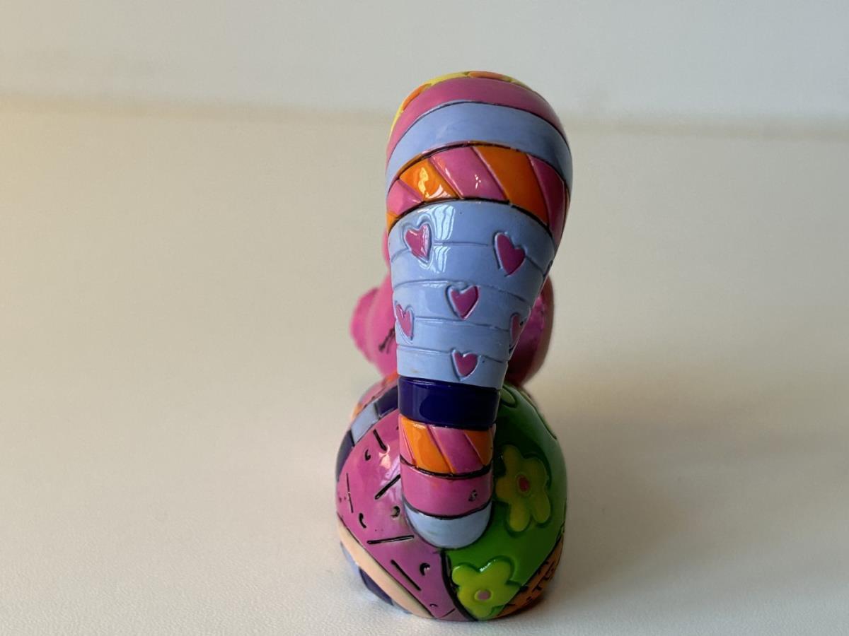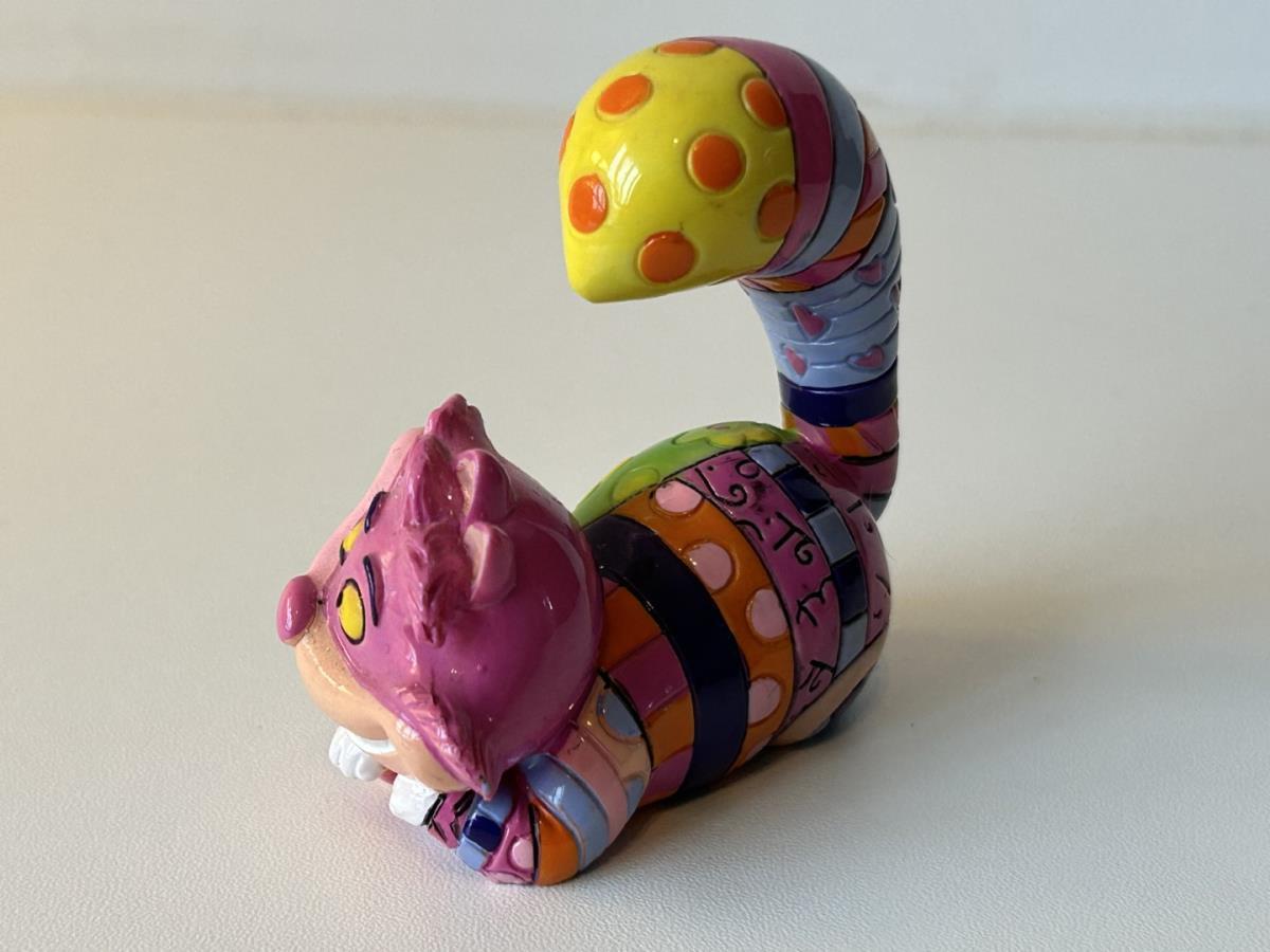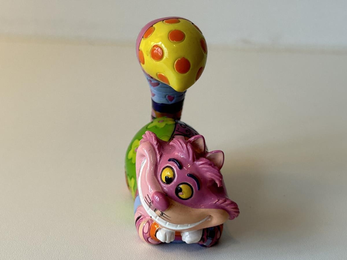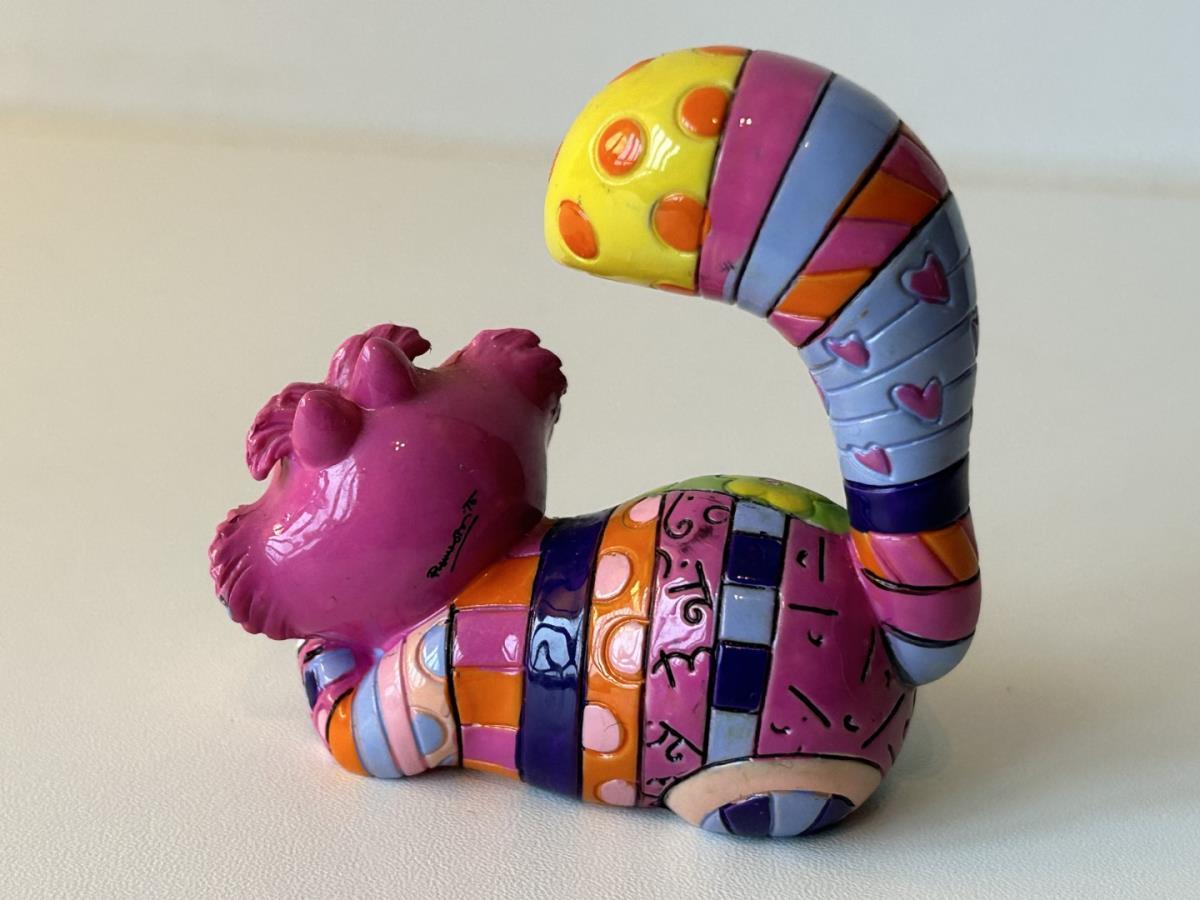 Origineel keramiek Disney-beeld en verzamelobject van de kat (Cheshire Cat) uit Alice in Wonderland, vervaardigd uit hoogwaardige polyresin steenhars door kunstenaar Romero Britto. Afmeting: +/- 9 à 10 cm. Staat/conditie: Perfecte nieuwstaat, zonder originele verpakking en verpakkingsdoos. Uitgever: Enesco/Romero Britto. Reeks/collectie: Disney by Britto uit Popshop Gallery (shopbritto.com) - Showcase collection. Authenticiteitszegel onderaan het beeld (zie foto's) en handtekening in beeld gegraveerd (zie foto). Galerijprijs: 100 dollar (zie shopbritto.com). Beelden nemen in waarde toe, vermits ze gelimiteerd worden geproduceerd en momenteel niet meer worden vervaardigd. Braziliaans kunstenaar Romero Britto staat bekend om zijn vrolijke en bonte gebruik van kleuren en patronen. Hij combineert klassieke Disney-figuren met pop-art-designs, De beeldjes zijn stuk voor stuk herkenbare Disney-karakters, maar gezien door de ogen van Britto. Een lust voor het oog en een kleurrijke eyecatcher in je interieur. De beelden worden handbeschilderd, dus minimale afwijkingen in kleur en/of afwerking kunnen voorkomen.