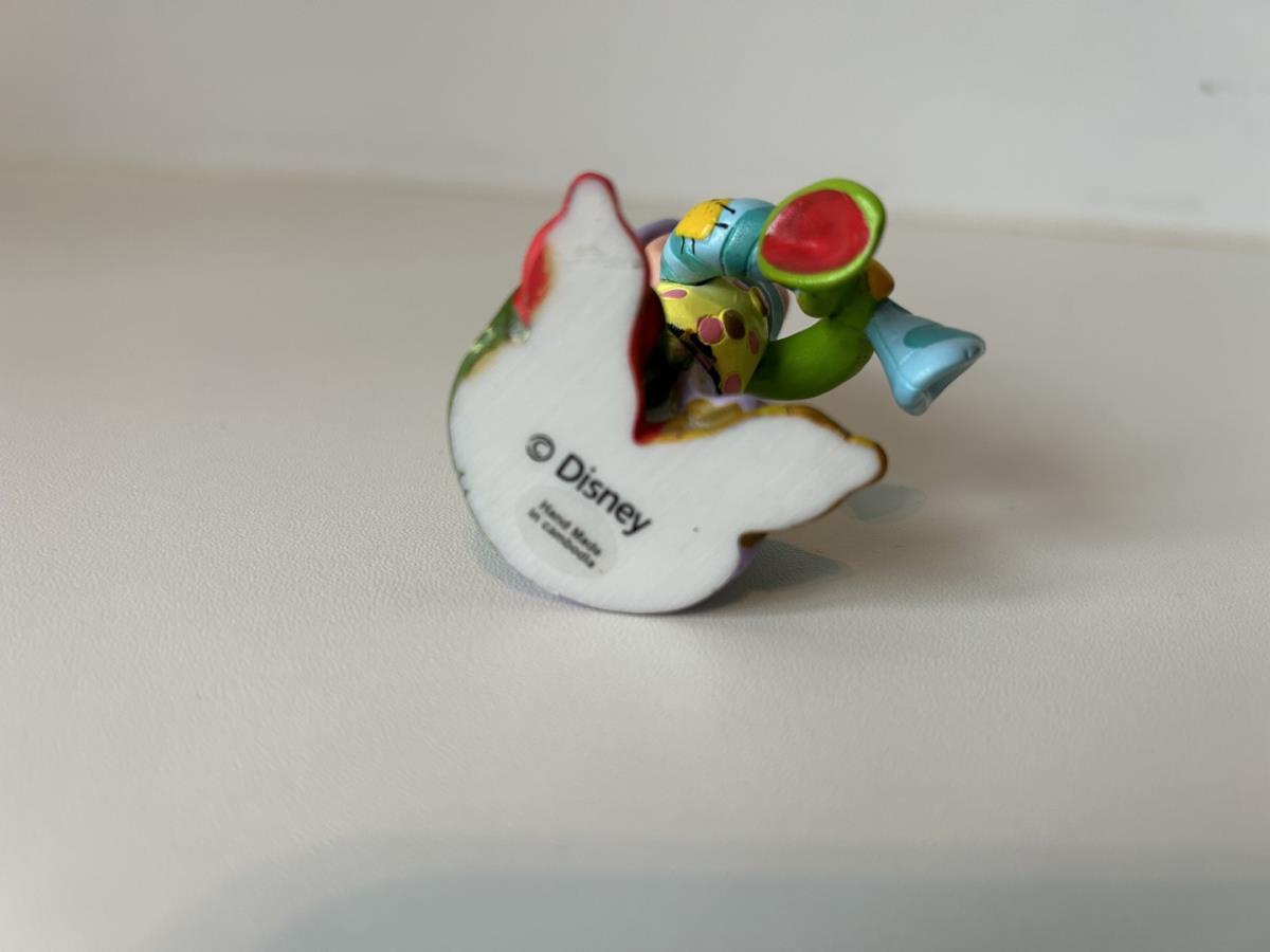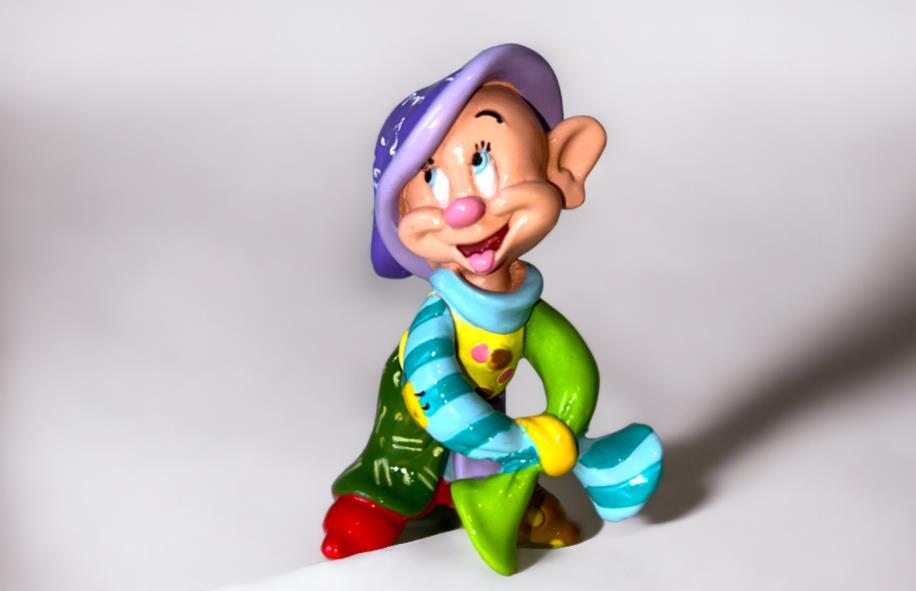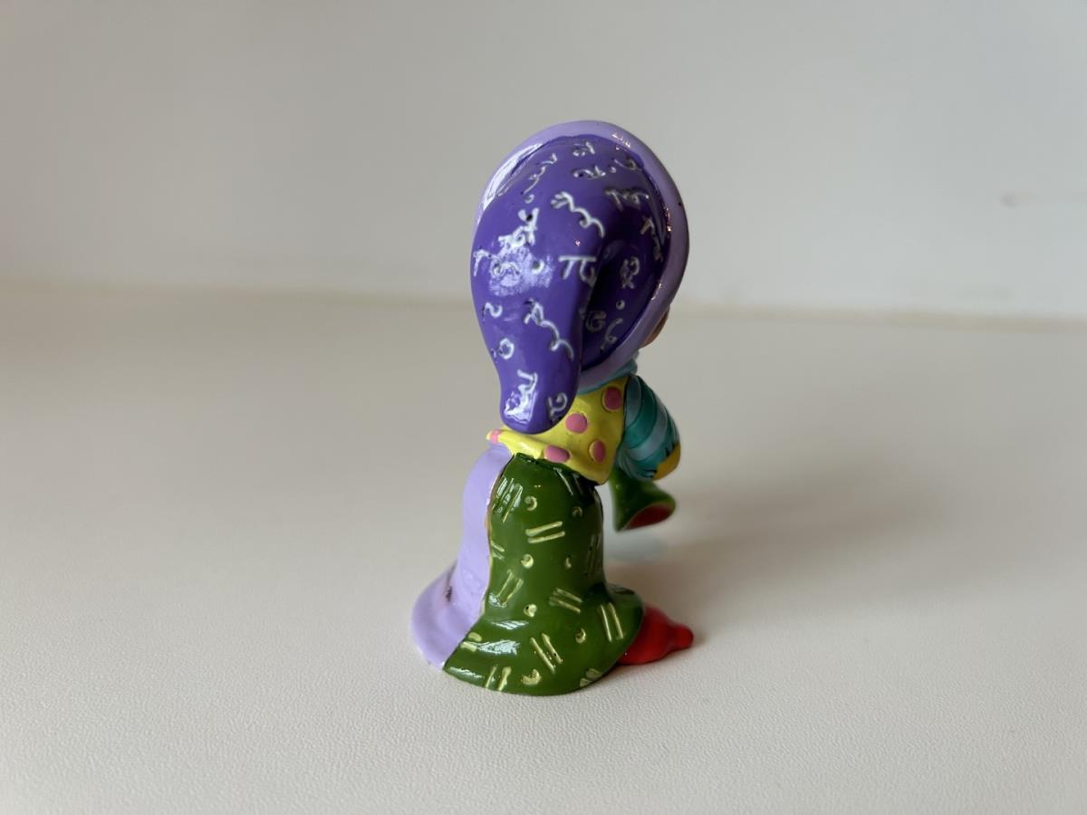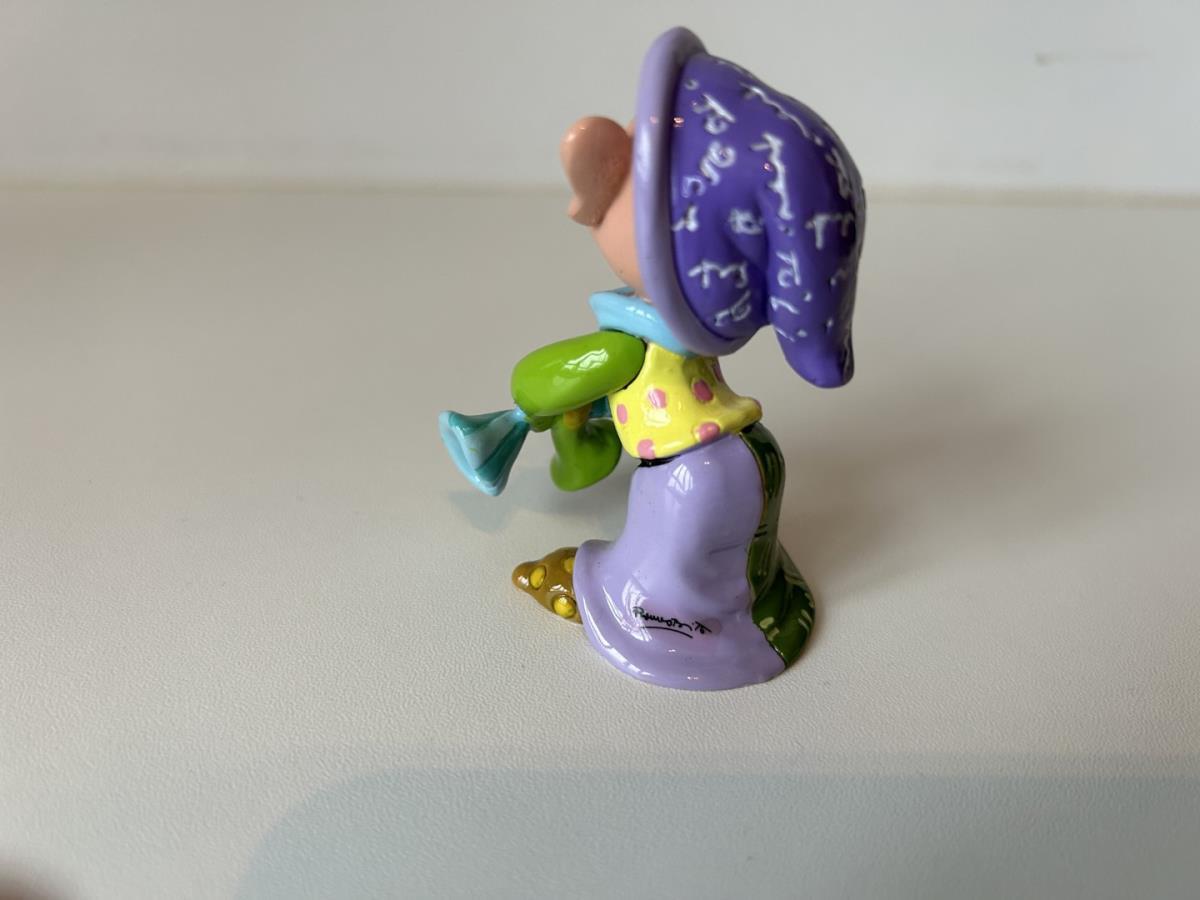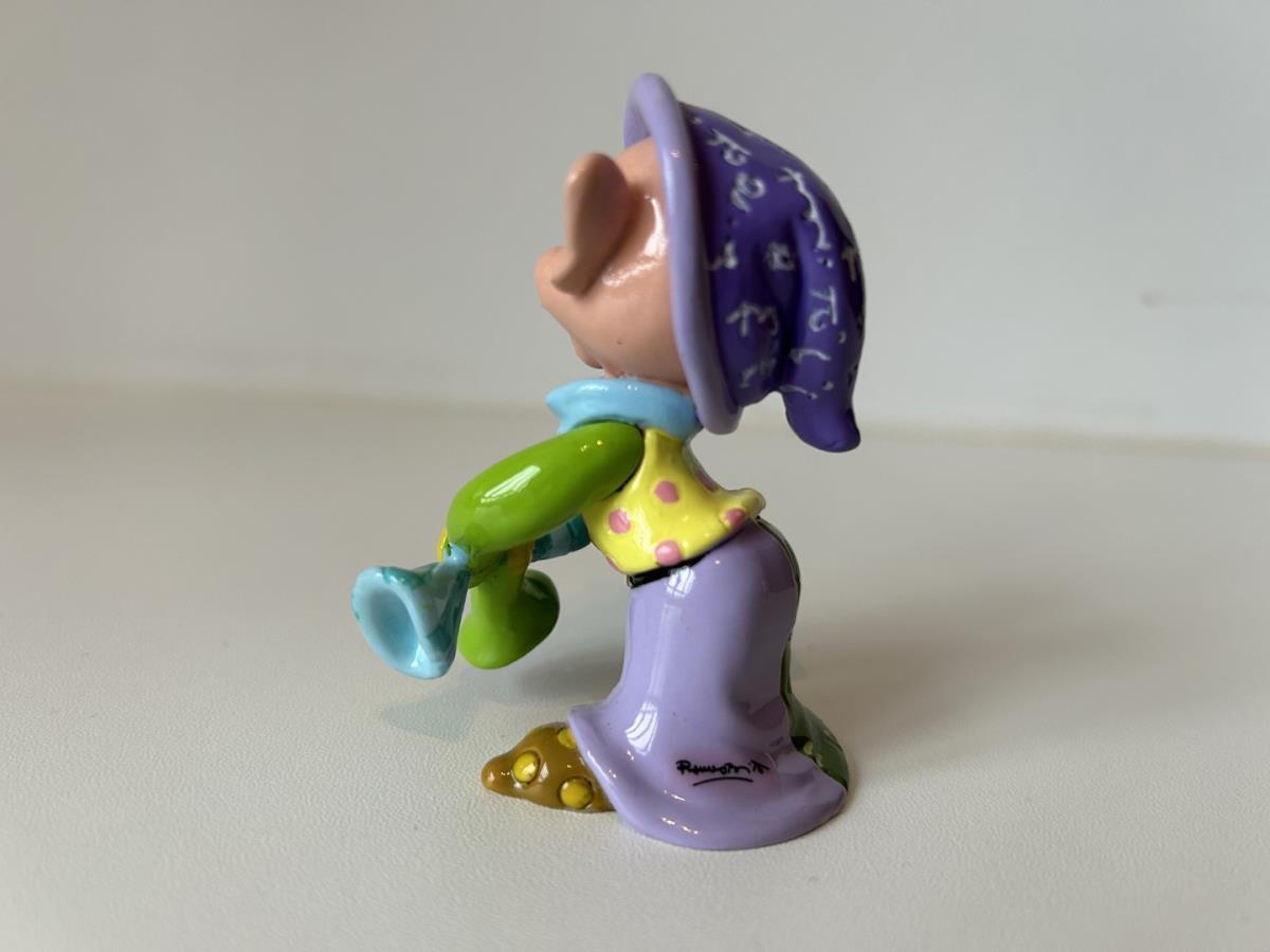 Origineel keramiek Disney-beeld en verzamelobject van Sleepy kabouter uit Sneeuwwitje en de zeven dwergen, vervaardigd uit hoogwaardige polyresin steenhars door kunstenaar Romero Britto. Afmeting: H: 11.94cm X W: 3.99cm X D: 5.49cm. Staat/conditie: Perfecte nieuwstaat, zonder originele verpakking en verpakkingsdoos. Uitgever: Enesco/Romero Britto. Reeks/collectie: Disney by Britto uit Popshop Gallery (shopbritto.com) - Showcase collection. Authenticiteitszegel onderaan het beeld (zie foto's) en handtekening in beeld gegraveerd (zie foto). Galerijprijs: 50 dollar (zie shopbritto.com). Beelden nemen in waarde toe, vermits ze gelimiteerd worden geproduceerd en momenteel niet meer worden vervaardigd. Braziliaans kunstenaar Romero Britto staat bekend om zijn vrolijke en bonte gebruik van kleuren en patronen. Hij combineert klassieke Disney-figuren met pop-art-designs, De beeldjes zijn stuk voor stuk herkenbare Disney-karakters, maar gezien door de ogen van Britto. Een lust voor het oog en een kleurrijke eyecatcher in je interieur. De beelden worden handbeschilderd, dus minimale afwijkingen in kleur en/of afwerking kunnen voorkomen.