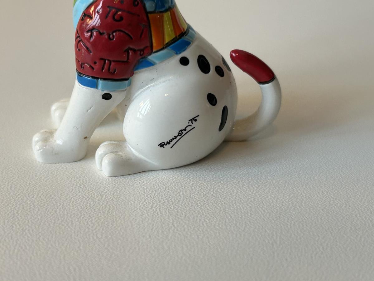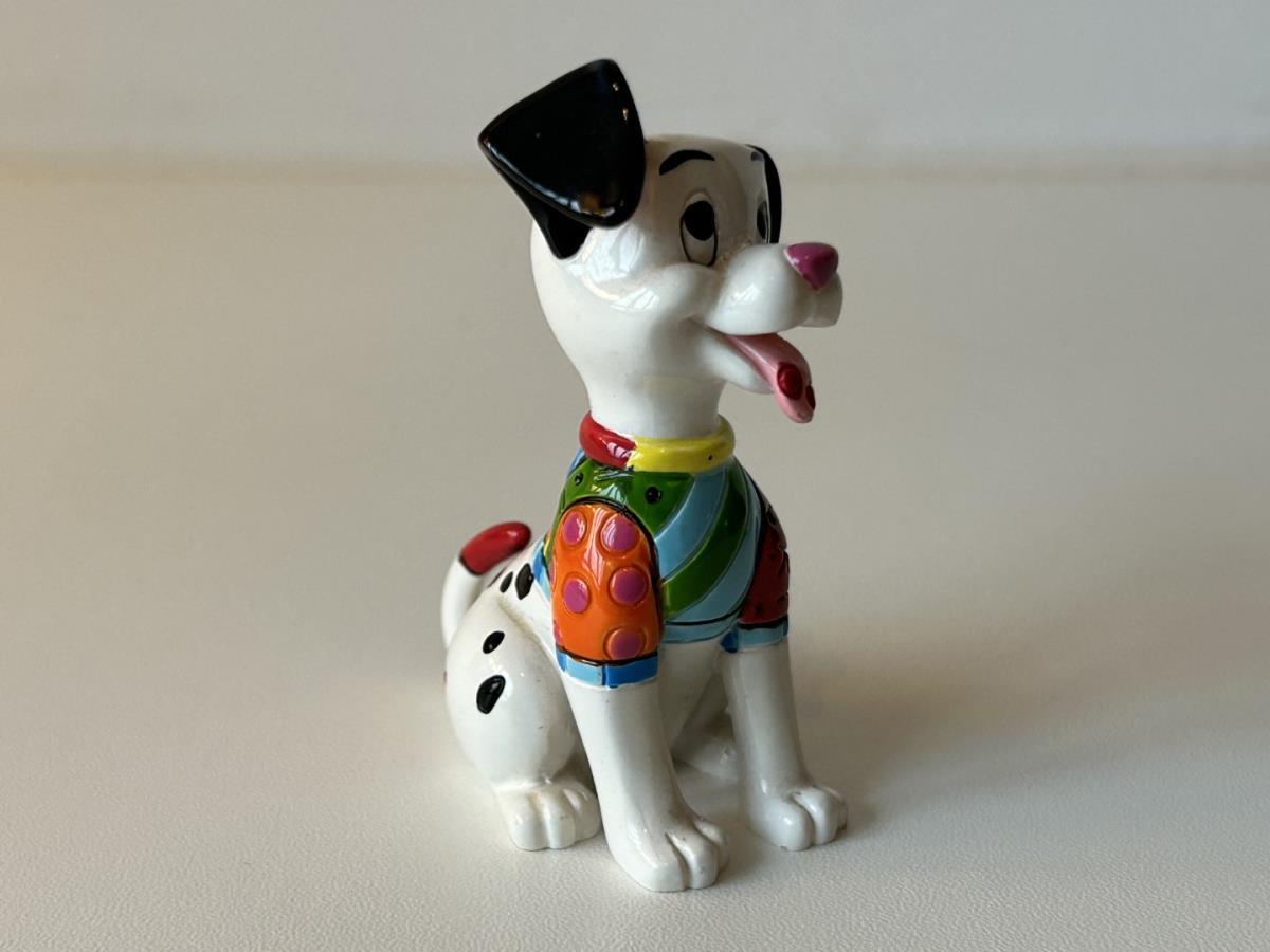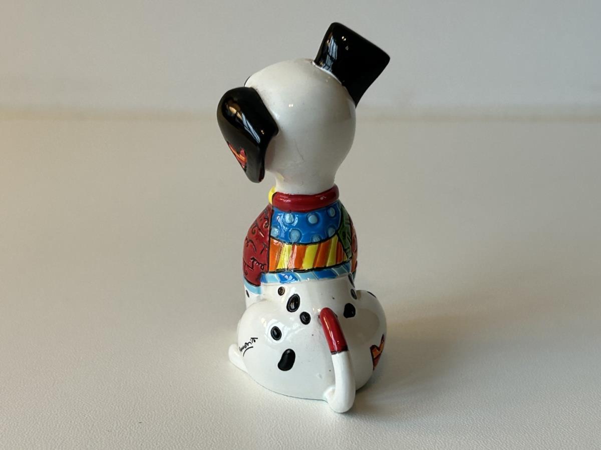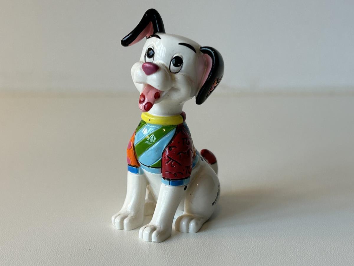 Origineel keramiek Disney-beeld en verzamelobject van de hond uit de 101 Dalmatiërs, vervaardigd uit hoogwaardige polyresin steenhars door kunstenaar Romero Britto. Afmeting: +/- 9 à 10 cm. Staat/conditie: Perfecte nieuwstaat, zonder originele verpakking en verpakkingsdoos. Uitgever: Enesco/Romero Britto. Reeks/collectie: Disney by Britto uit Popshop Gallery (shopbritto.com) - Showcase collection. Authenticiteitszegel onderaan het beeld (zie foto's) en handtekening in beeld gegraveerd (zie foto). Galerijprijs: 100 dollar (zie shopbritto.com). Beelden nemen in waarde toe, vermits ze gelimiteerd worden geproduceerd en momenteel niet meer worden vervaardigd. Braziliaans kunstenaar Romero Britto staat bekend om zijn vrolijke en bonte gebruik van kleuren en patronen. Hij combineert klassieke Disney-figuren met pop-art-designs, De beeldjes zijn stuk voor stuk herkenbare Disney-karakters, maar gezien door de ogen van Britto. Een lust voor het oog en een kleurrijke eyecatcher in je interieur. De beelden worden handbeschilderd, dus minimale afwijkingen in kleur en/of afwerking kunnen voorkomen.