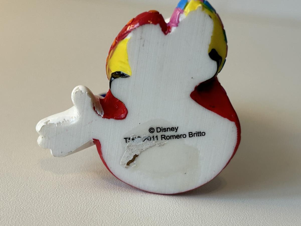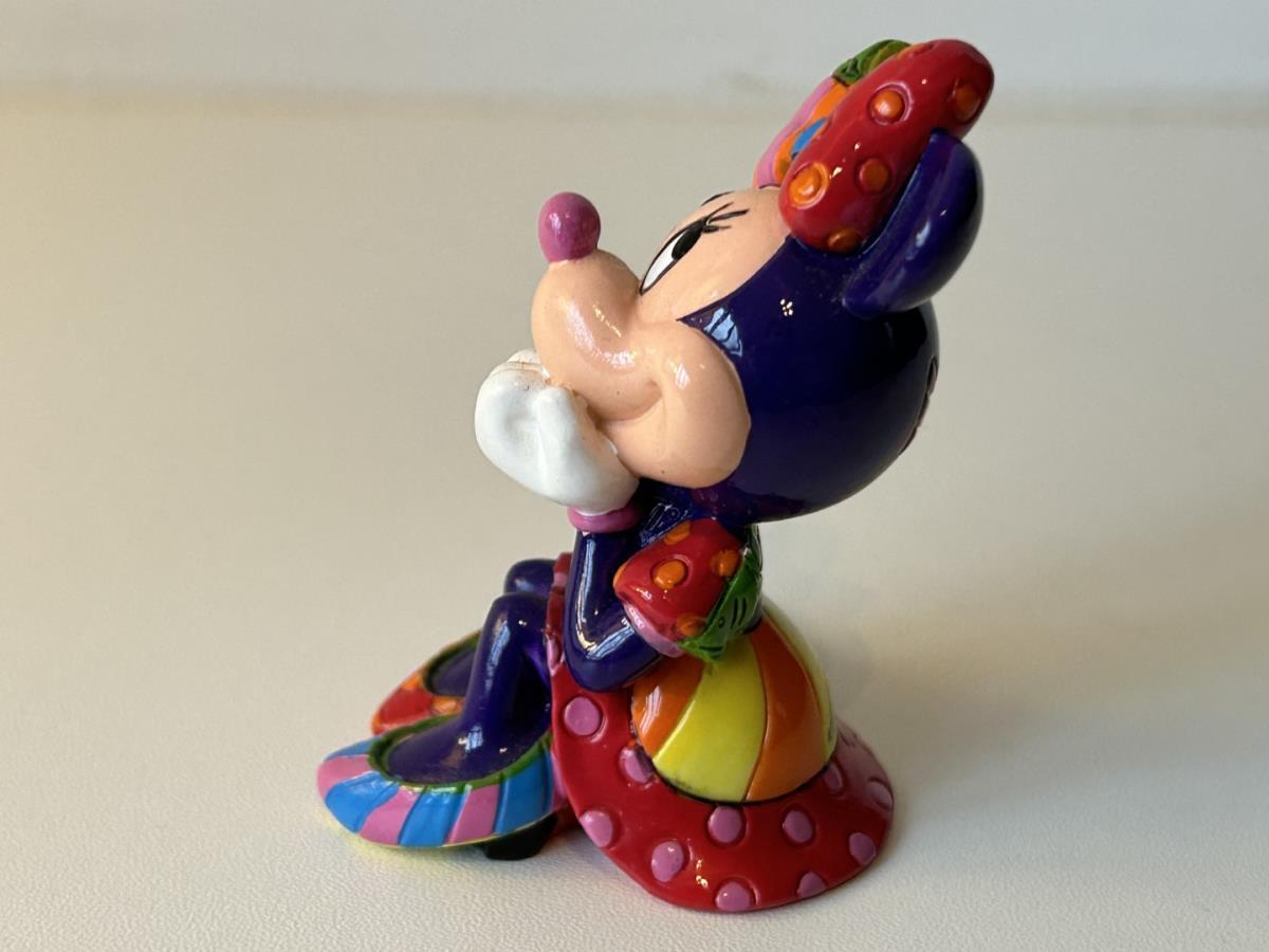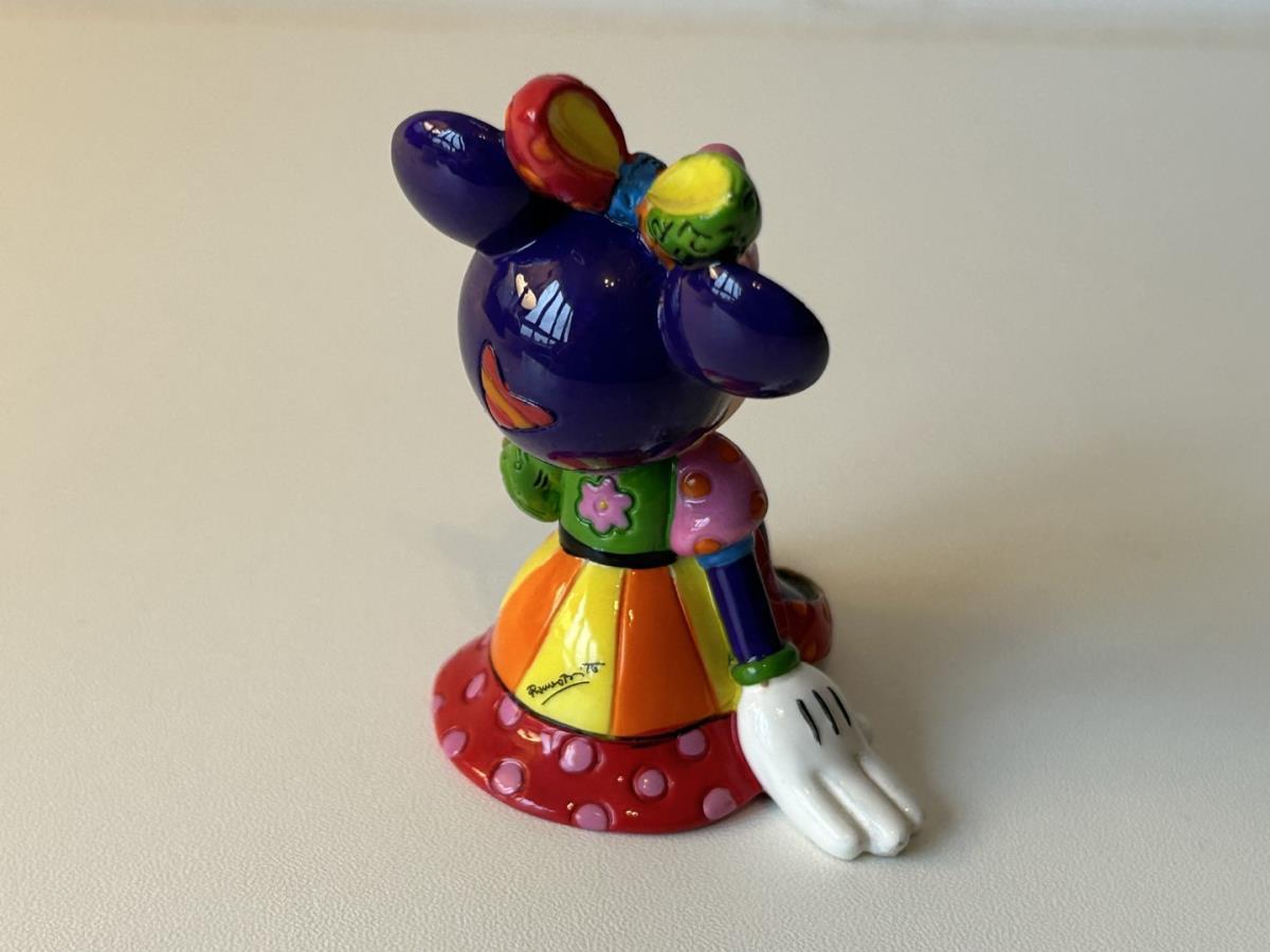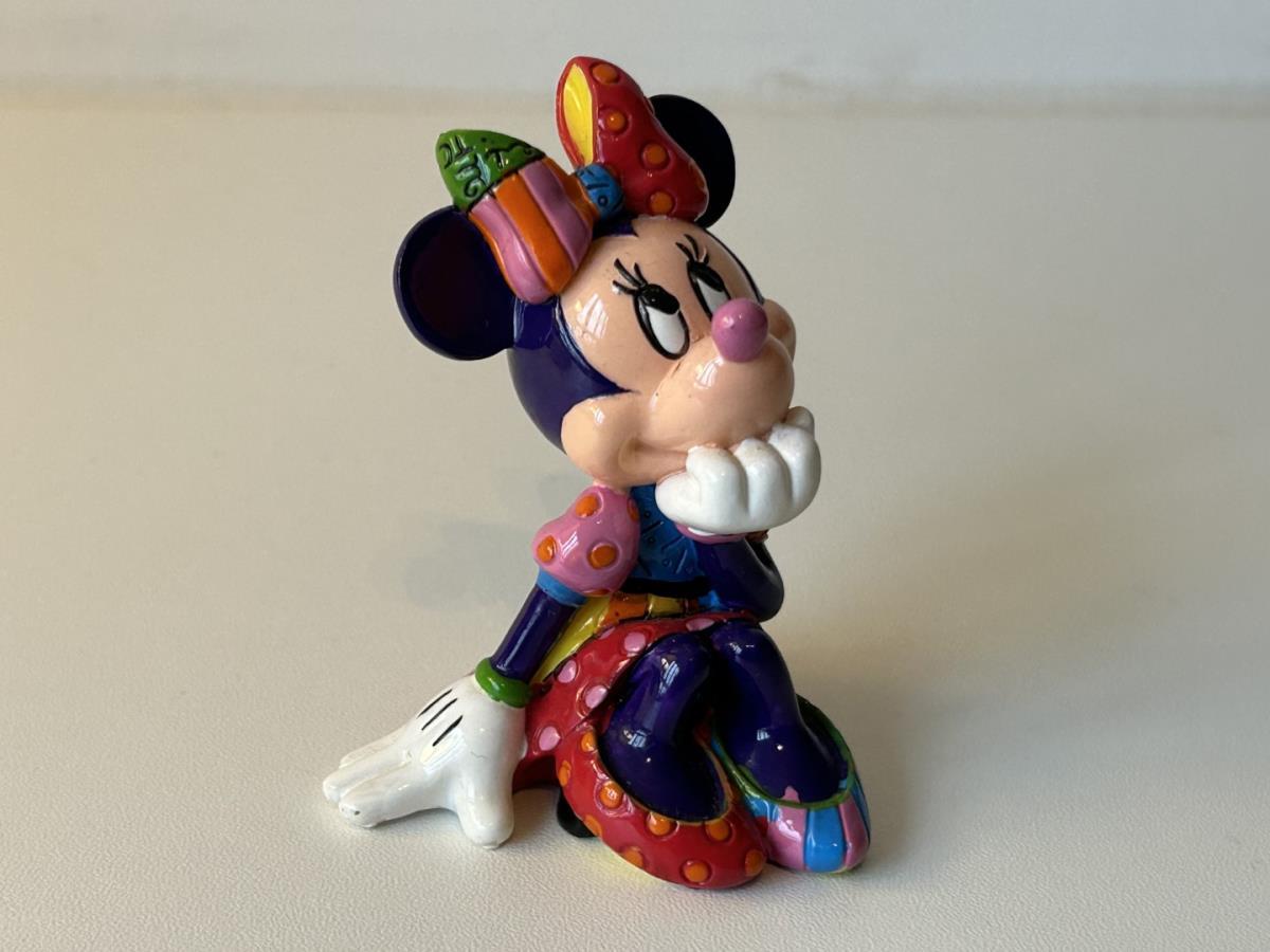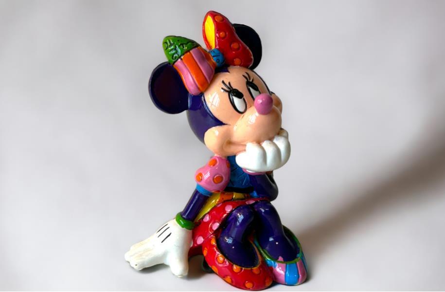 Origineel keramiek Disney-beeld en verzamelobject van Disney-icoon Minnie Mouse, vervaardigd uit hoogwaardige polyresin steenhars door kunstenaar Romero Britto. Afmeting: +/- 9 à 10 cm. Staat/conditie: Perfecte nieuwstaat, zonder originele verpakking en verpakkingsdoos. Uitgever: Enesco/Romero Britto. Reeks/collectie: Disney by Britto uit Popshop Gallery (shopbritto.com) - Showcase collection. Authenticiteitszegel onderaan het beeld (zie foto's) en handtekening in beeld gegraveerd (zie foto). Galerijprijs: 100 dollar (zie shopbritto.com). Beelden nemen in waarde toe, vermits ze gelimiteerd worden geproduceerd en momenteel niet meer worden vervaardigd. Braziliaans kunstenaar Romero Britto staat bekend om zijn vrolijke en bonte gebruik van kleuren en patronen. Hij combineert klassieke Disney-figuren met pop-art-designs, De beeldjes zijn stuk voor stuk herkenbare Disney-karakters, maar gezien door de ogen van Britto. Een lust voor het oog en een kleurrijke eyecatcher in je interieur. De beelden worden handbeschilderd, dus minimale afwijkingen in kleur en/of afwerking kunnen voorkomen.