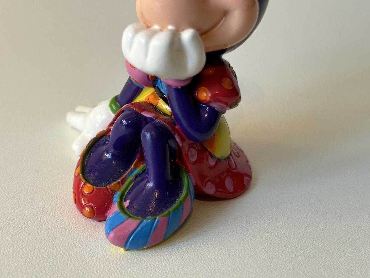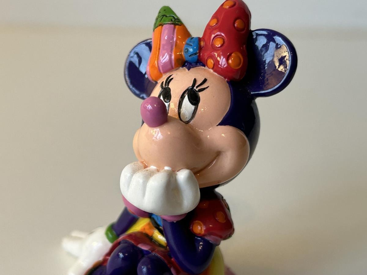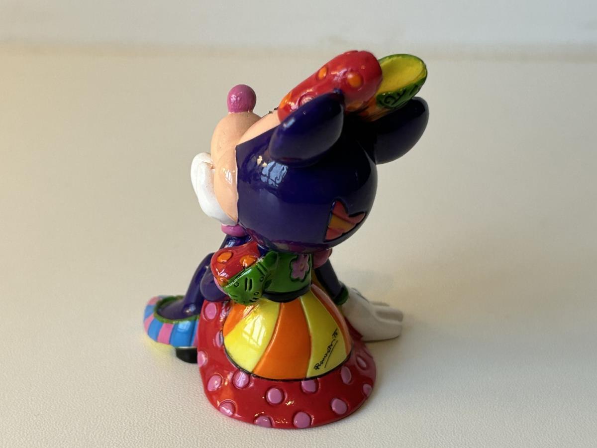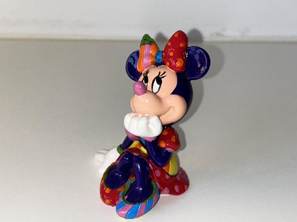 Origineel keramiek Disney-beeld en verzamelobject van Disney-icoon Minnie Mouse, vervaardigd uit hoogwaardige polyresin steenhars door kunstenaar Romero Britto. Afmeting: +/- 9 à 10 cm. Staat/conditie: Perfecte nieuwstaat, zonder originele verpakking en verpakkingsdoos. Uitgever: Enesco/Romero Britto. Reeks/collectie: Disney by Britto uit Popshop Gallery (shopbritto.com) - Showcase collection. Authenticiteitszegel onderaan het beeld (zie foto's) en handtekening in beeld gegraveerd (zie foto). Galerijprijs: 100 dollar (zie shopbritto.com). Beelden nemen in waarde toe, vermits ze gelimiteerd worden geproduceerd en momenteel niet meer worden vervaardigd. Braziliaans kunstenaar Romero Britto staat bekend om zijn vrolijke en bonte gebruik van kleuren en patronen. Hij combineert klassieke Disney-figuren met pop-art-designs, De beeldjes zijn stuk voor stuk herkenbare Disney-karakters, maar gezien door de ogen van Britto. Een lust voor het oog en een kleurrijke eyecatcher in je interieur. De beelden worden handbeschilderd, dus minimale afwijkingen in kleur en/of afwerking kunnen voorkomen.
