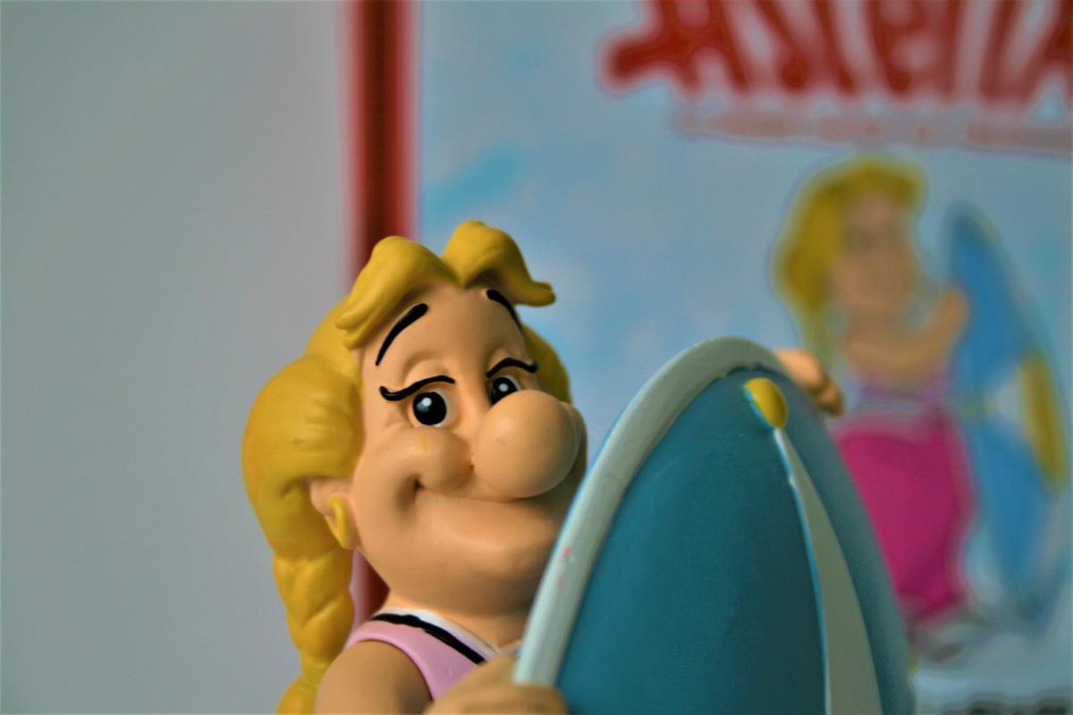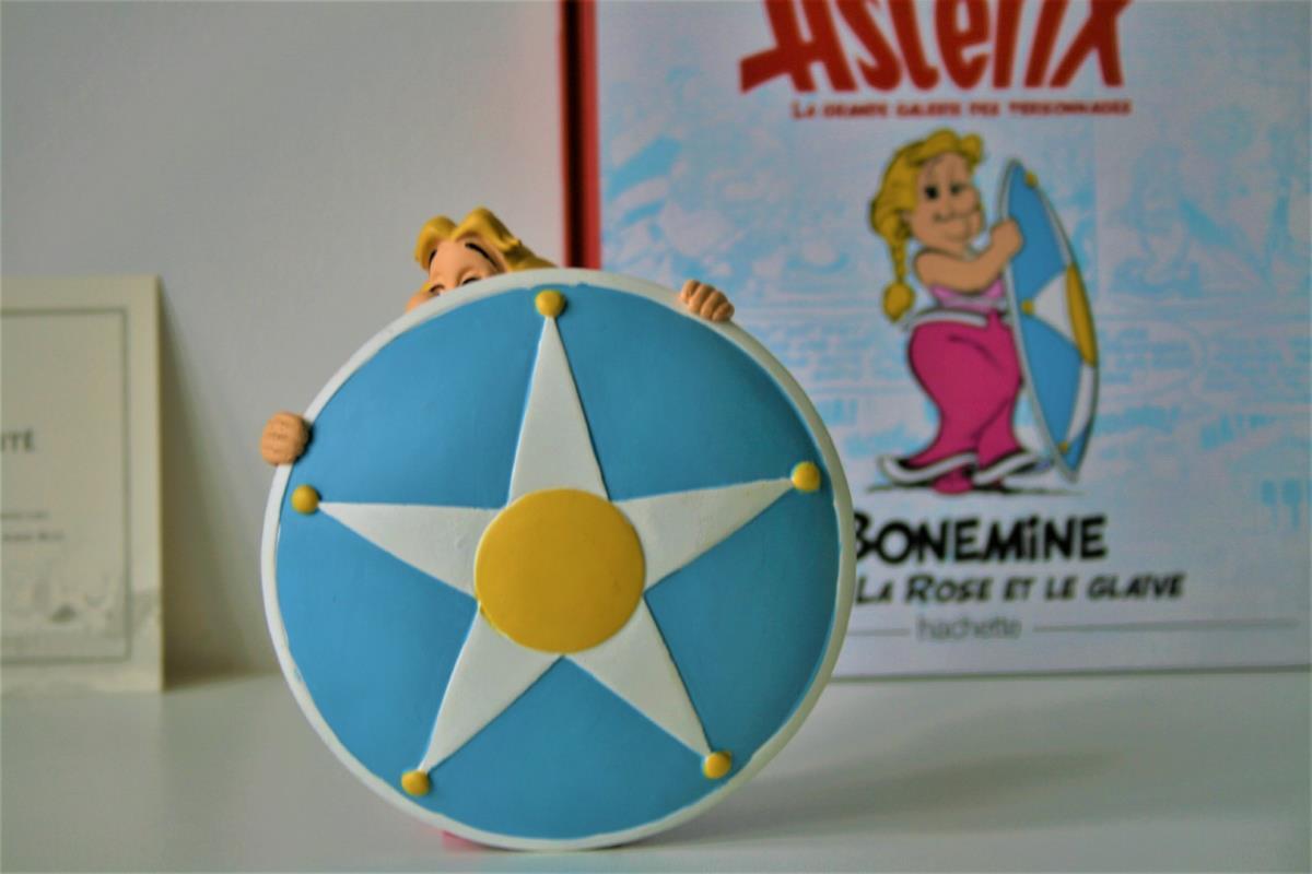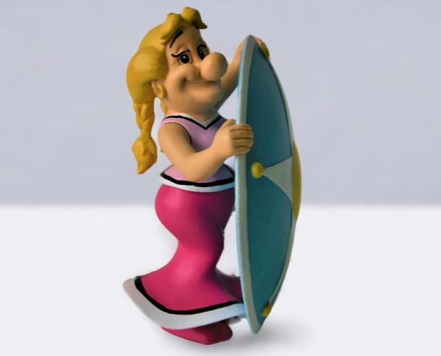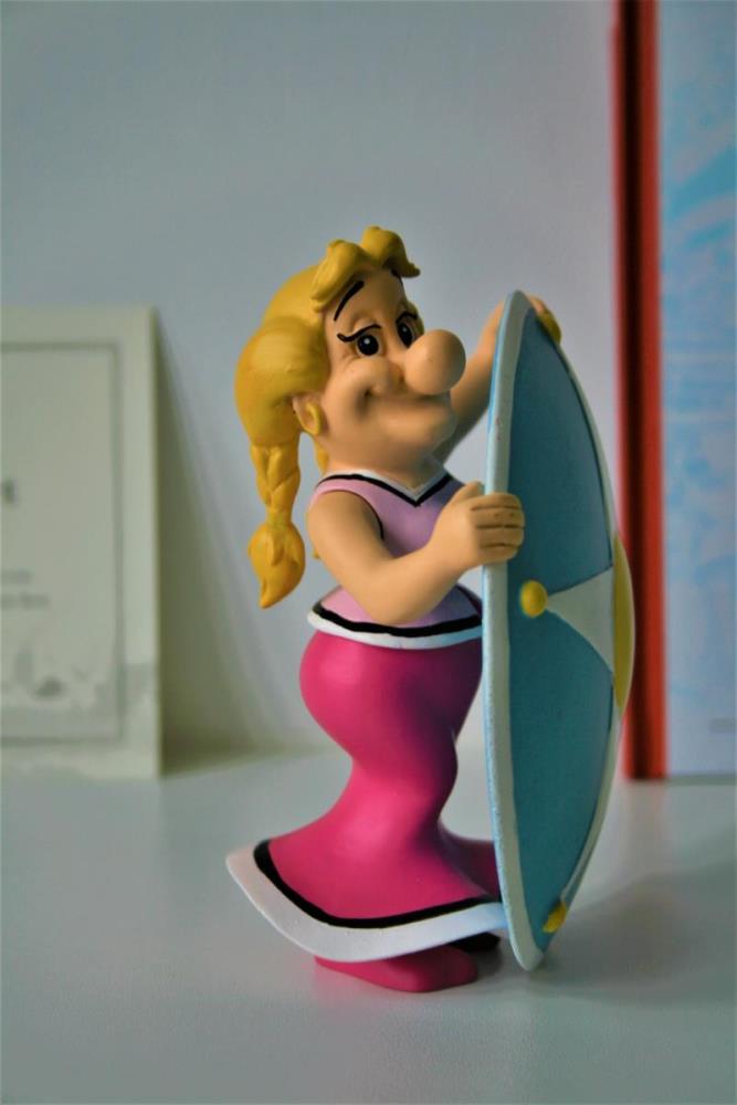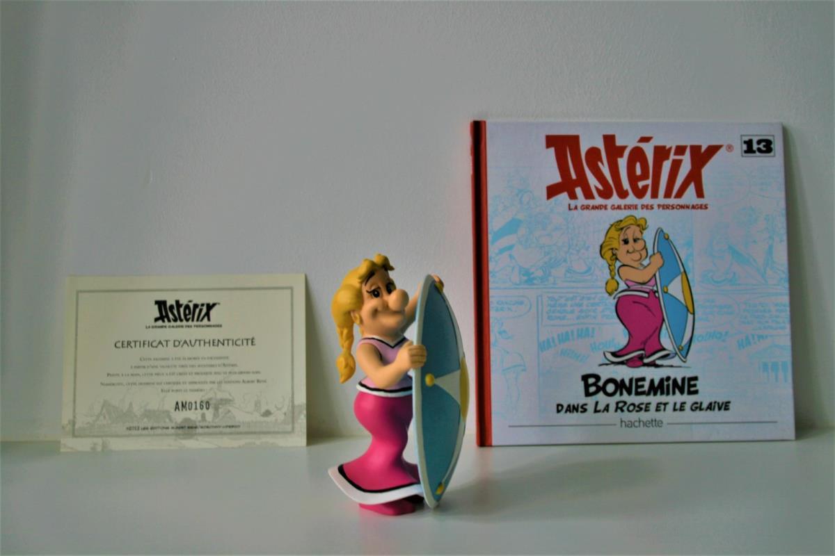Asterix en Obelix Beeldje uit kwalitatief geverfde kunsthars van "Bellefleur/Bonemine" (nr. 13) uit het album "De roos en het zwaard (1991)". Verzamelfiguur uitgegeven door Hachette in 2012 in de serie "La Grande Galerie des personages d'Asterix". Editie: Albert René/Goscinny-Uderzo. Figuur bevat een Franstalig echtheidscertificaat (zie foto) en een 32-bladige Franstalige monografie over personage (zie foto). Verkoopsstaat: nieuwstaat, niet in originele verpakking. De personages uit de serie/editie hebben een hoogte ca. 8 tot 18 cm, afhankelijk van het individuele personage. De uitgave van het figuur uit kunsthars kent een beperkte oplage vanwege het unieke echtheidscertificaat, waardoor het zeer zelden op veilingen aangeboden wordt. Extra informatie over personage: Bellefleur, de vrouw van het stamhoofd Heroïx, is heel trots op haar status van 'First Lady' van het dorp. Ze is een vrouw met karakter, autoritair en kritisch op haar echtgenoot. Ze is dol op roddelen en nodigt daarom graag de dames van het dorp bij haar thuis uit voor een kopje geitenmelk.