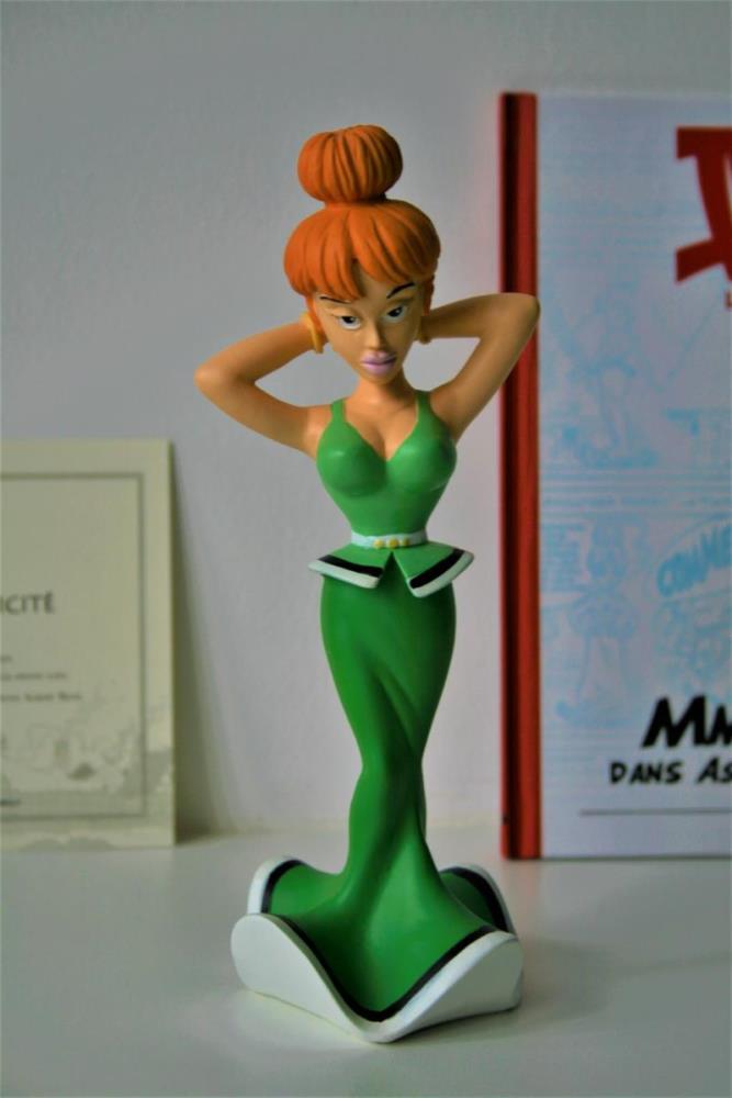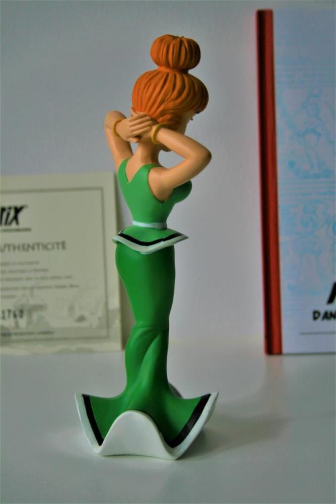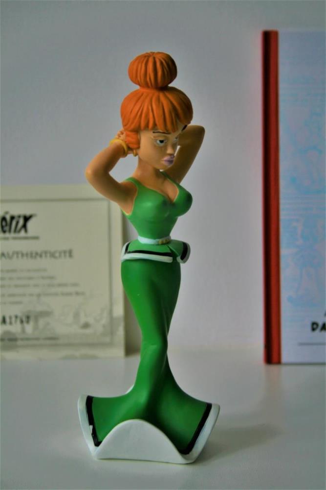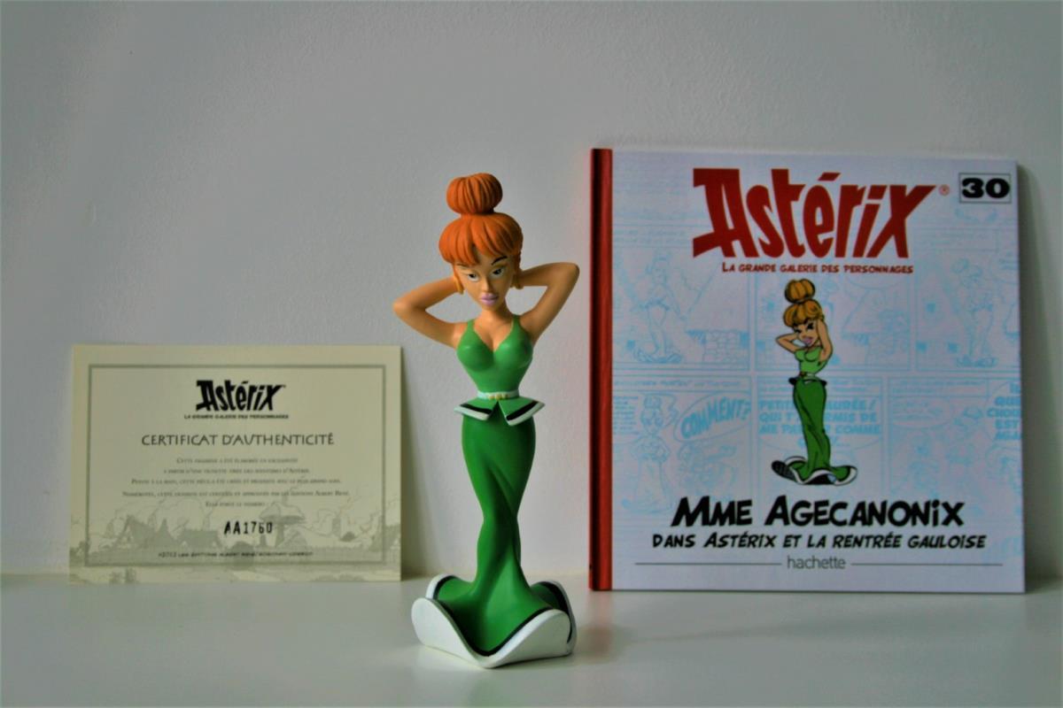 Asterix en Obelix Beeldje uit kwalitatief geverfde kunsthars van "Mevrouw Nestorix/Madamme Agecanonix" (nr. 30) uit het album "Het pretpakket (2003)". Verzamelfiguur uitgegeven door Hachette in 2012 in de serie "La Grande Galerie des personages d'Asterix". Editie: Albert René/Goscinny-Uderzo. Figuur bevat een Franstalig echtheidscertificaat (zie foto) en een 32-bladige Franstalige monografie over personage (zie foto). Verkoopsstaat: nieuwstaat, niet in originele verpakking. De personages uit de serie/editie hebben een hoogte ca. 8 tot 18 cm, afhankelijk van het individuele personage. De uitgave van het figuur uit kunsthars kent een beperkte oplage vanwege het unieke echtheidscertificaat, waardoor het zeer zelden op veilingen aangeboden wordt. Extra info over personage: De echtgenote van Nestorix, de oudste inwoner van het dorp, is een jonge Gallische van wie nog veel onbekend is. Mevrouw Nestorix kan heel bazig zijn en jaloers. Maar ze heeft ook een grenzeloze bewondering voor haar man. Kortom, mevrouw Nestorix is een Gallische met karakter,